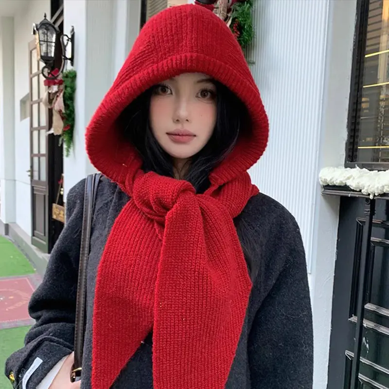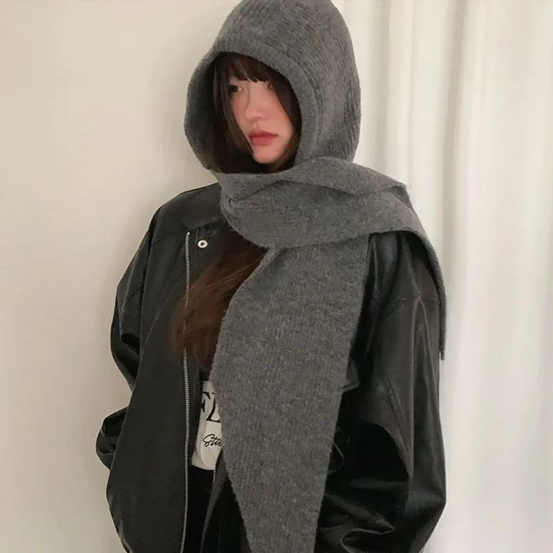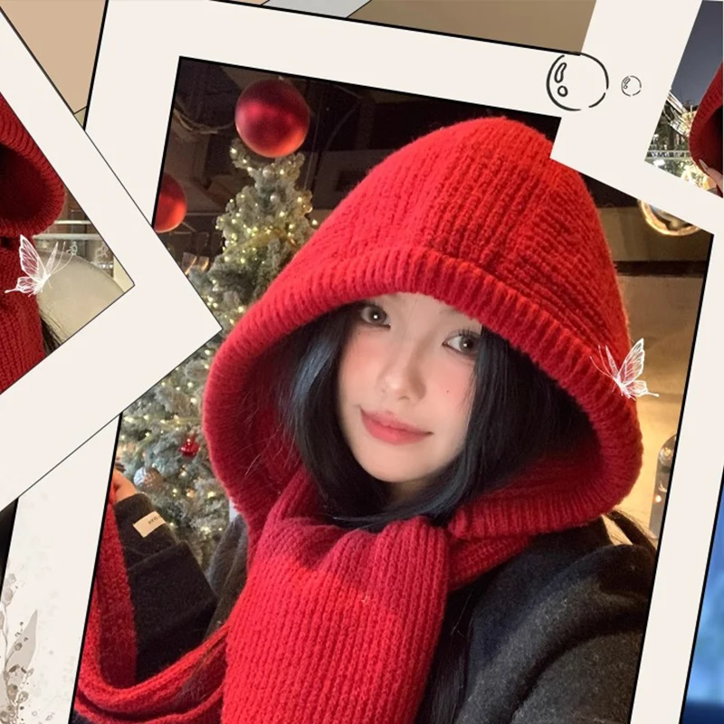 Knitted Winter Balaclava One-piece Thickened Scarf Cap Winter Accessories Hooded Hat Neck Protection Scarf Cold Weather New