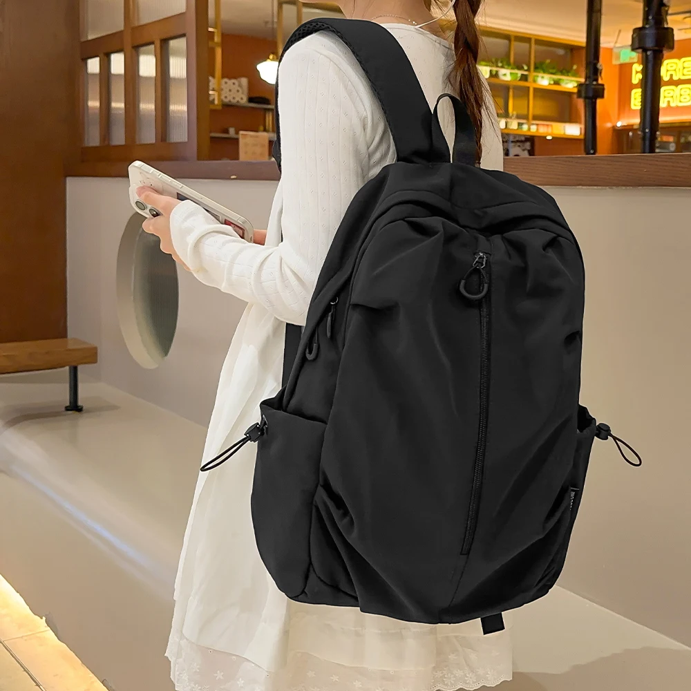 Korean Style Simple Solid Color Zipper Computer Backpack, School and Commuting Backpack