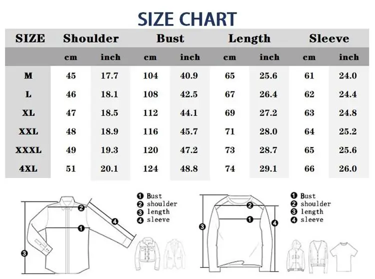 NOTE:If you are not sure about the size, please leave us your weight and height, chest and shoulder measurements. We can help you to choose the correct size.