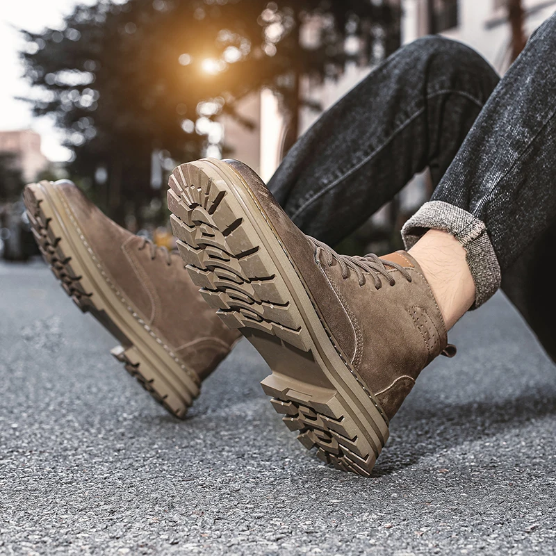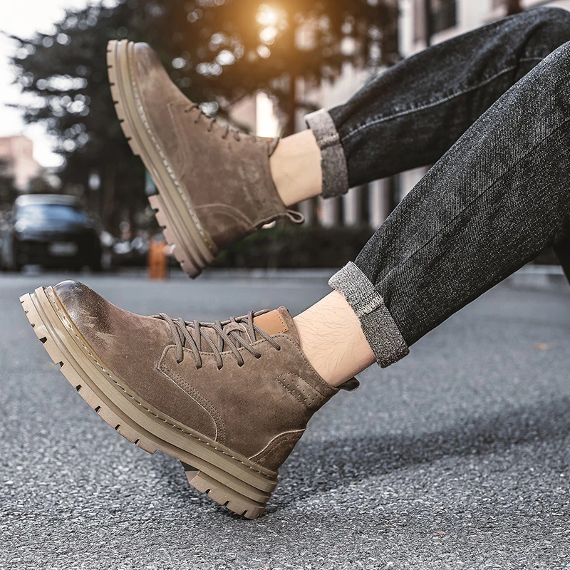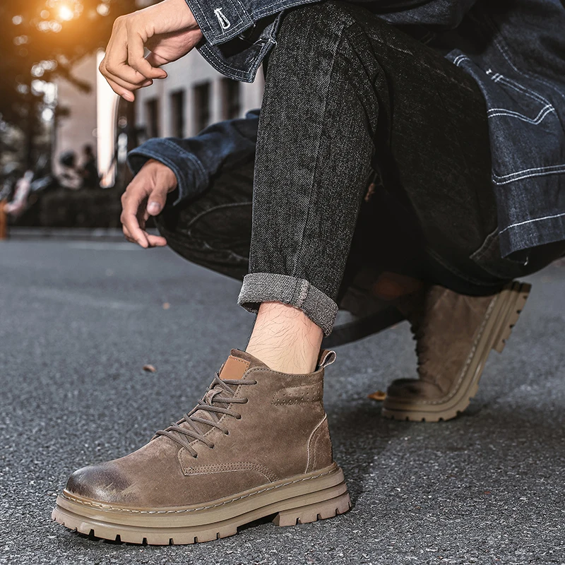 Lace Up High-top Ankle Boots Classi Male Simple Desert Boots British Style Men Casual Leather Cowboy Boots Business Outdoor Shoe