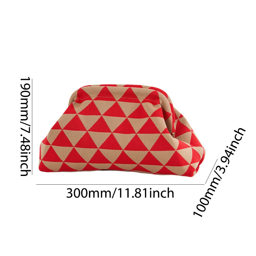 Women Small Crochet Cloud Handbag Contrast Color Knitting Dumpling Clutch Casual Colorblock Bag Woven Bag for Female Specification: Origin: Mainland China Main Material: Knit Fabric Product Size: 300.00*190.00*100.00mm/11.81*7.48*3.94inch Place Of Origin: FU JIAN Province