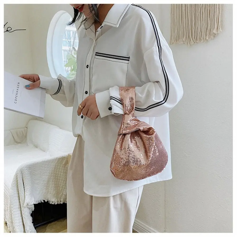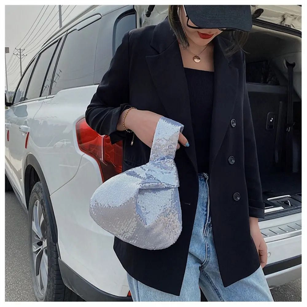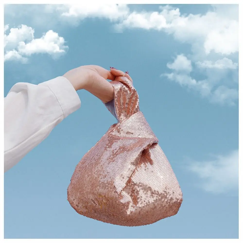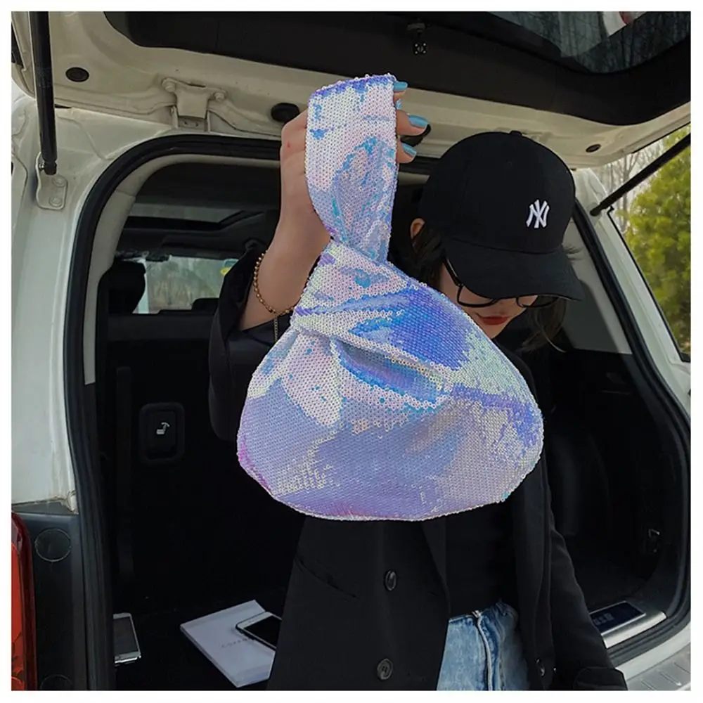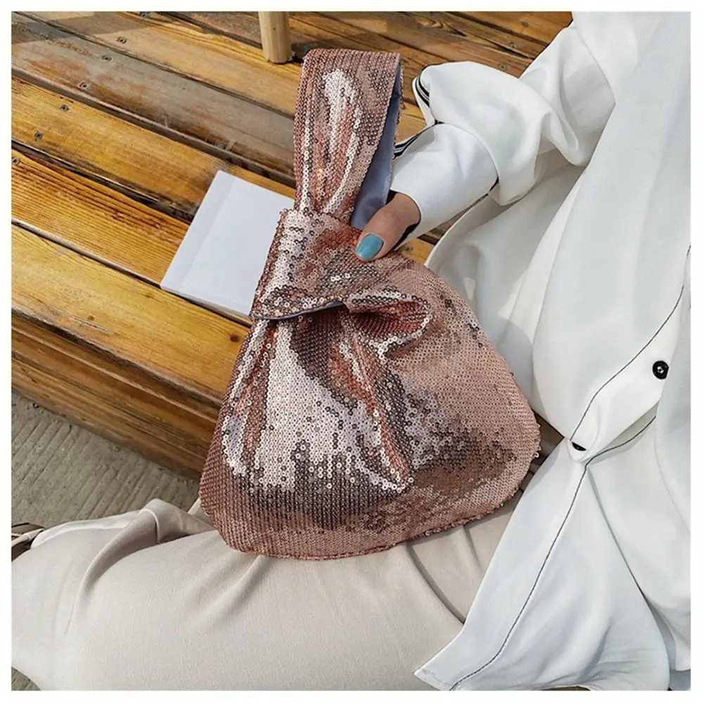 Ladies Trendy Fashion Reversible Sequin Evening Clutch Purse Women Girls Small Glitter Wrist Knot Bag
