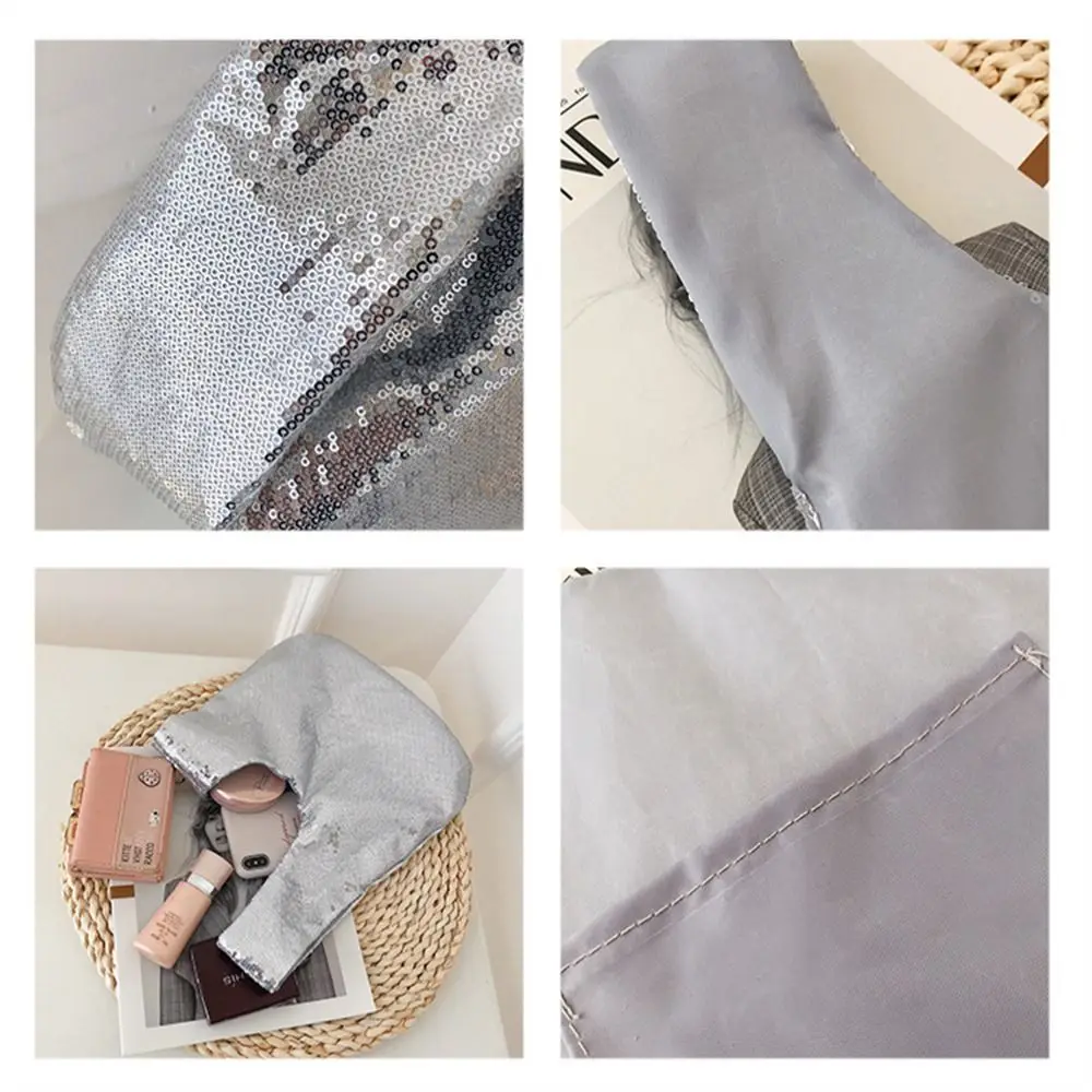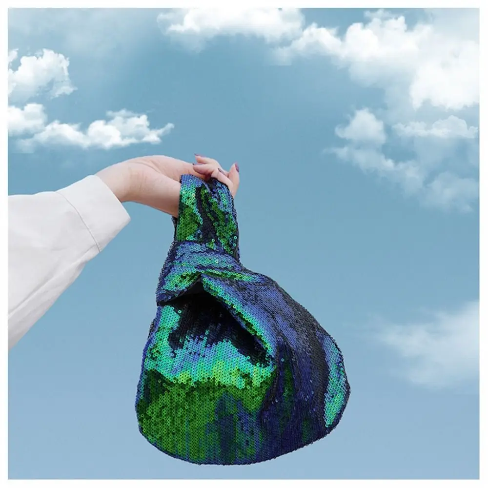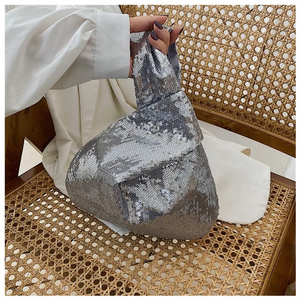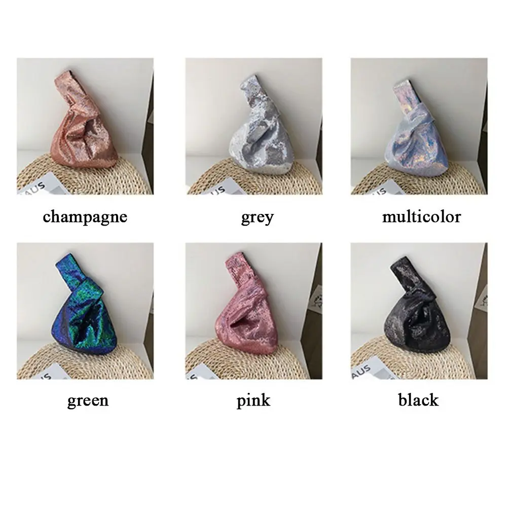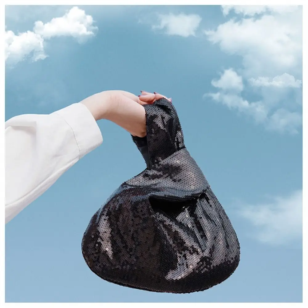 Ladies Trendy Fashion Reversible Sequin Evening Clutch Purse Women Girls Small Glitter Wrist Knot Bag