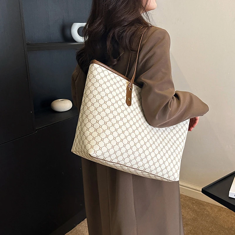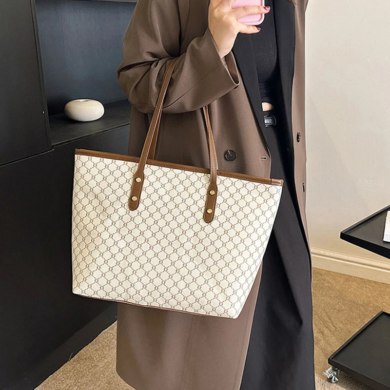 Large Capacity Shoulder Bag Women's PU Leather Handbag for Commuting and Casual Use Versatile Tote Bag