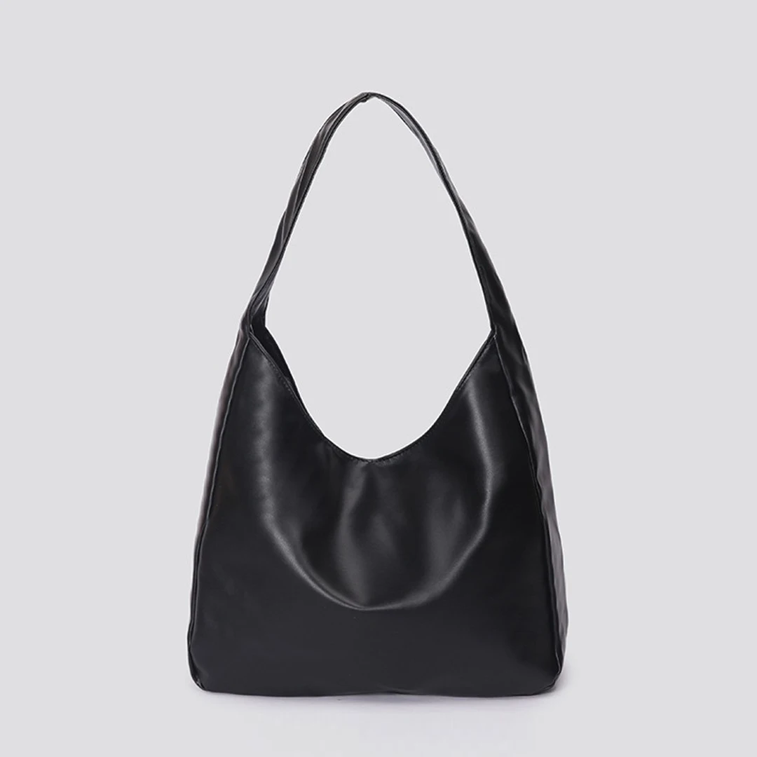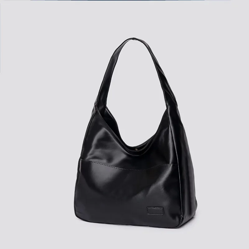 Large capacity tote bag, new black leather simple casual commuting women's bag, fashionable and versatile single shoulder bag