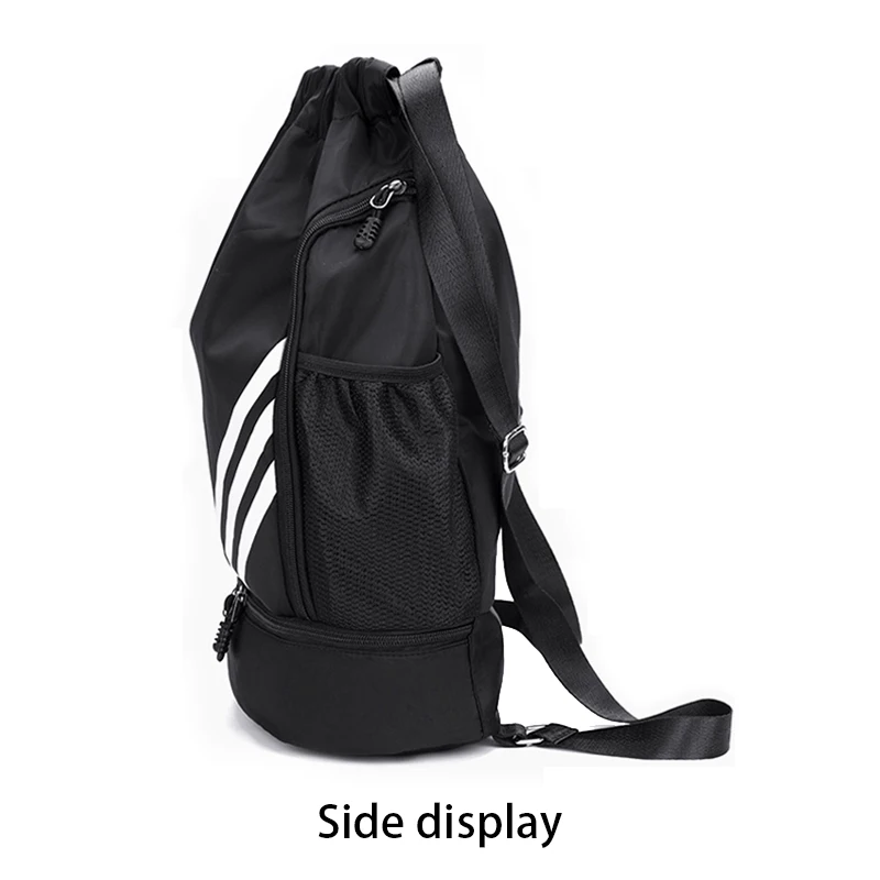 Large capacity design, easy to accommodate equipment: The backpack has sufficient capacity to accommodate a full set of equipment such as basketball, soccer, sports shoes, fitness clothes, and even suitable for clothing and daily necessities during short trips. This large capacity feature is particularly suitable for users who need to carry multiple items. Side pockets are convenient for storing small items such as water bottles, mobile phones, keys, etc.