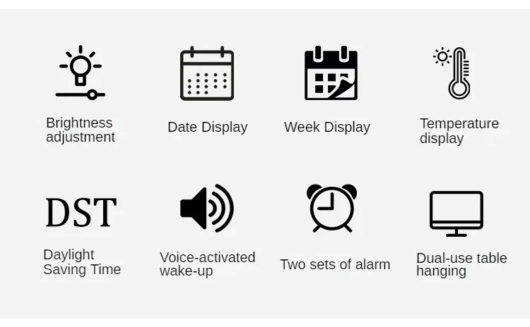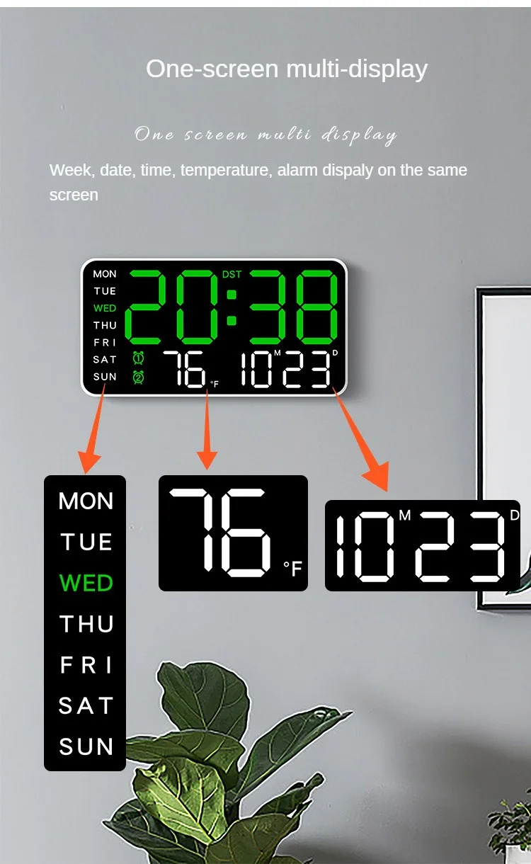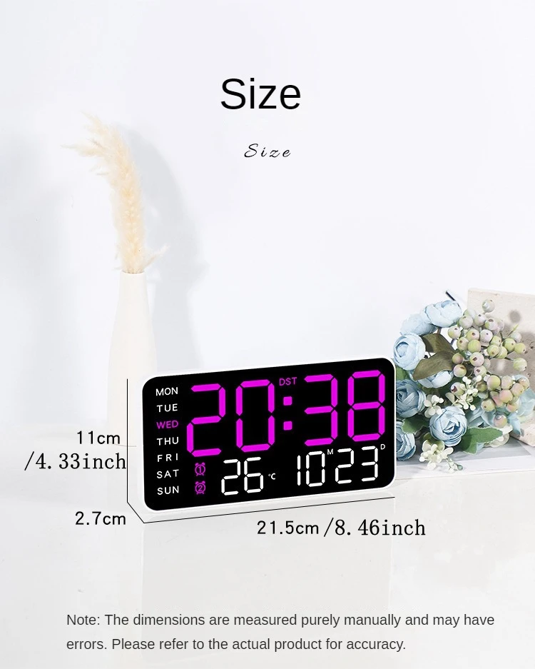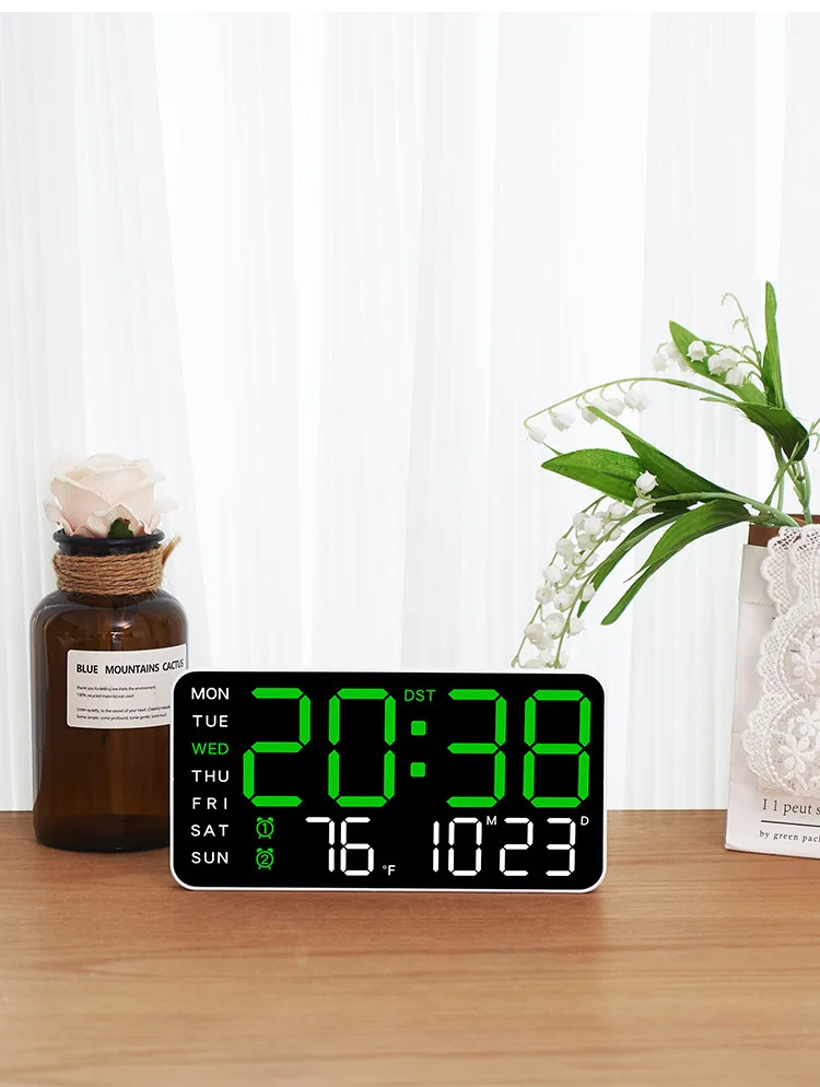 Large Digital Wall Clock Week Date Temperature Display Voice Control Table LED Alarm Clocks Brightness Adjustable 12/24H Clock
