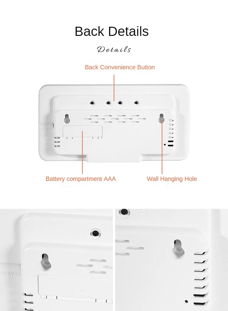 Note:The screen will go off after 10 seconds when only powered by 3xAAA Battery(Not Included).Clap your hand or knock on the table over 60DB to wake up the screen.If you want screen always on, please plug in use.(USB cable Included but Plug Not Included)
