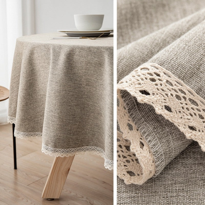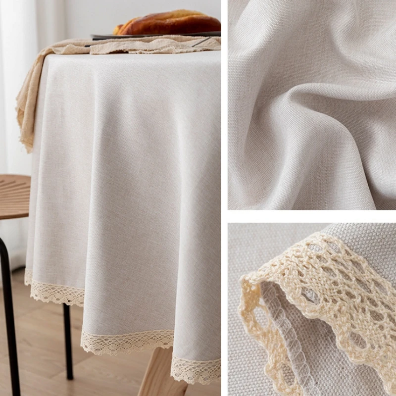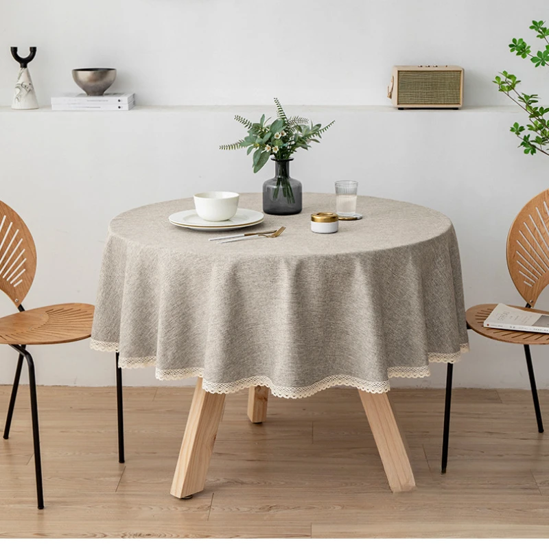 Large Round Tablecloth Solid Color Cotton Linen Waterproof Table Cloth Oil-Proof Table Cover for Kitchen Garden Restaurant