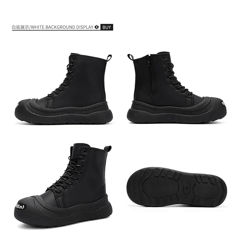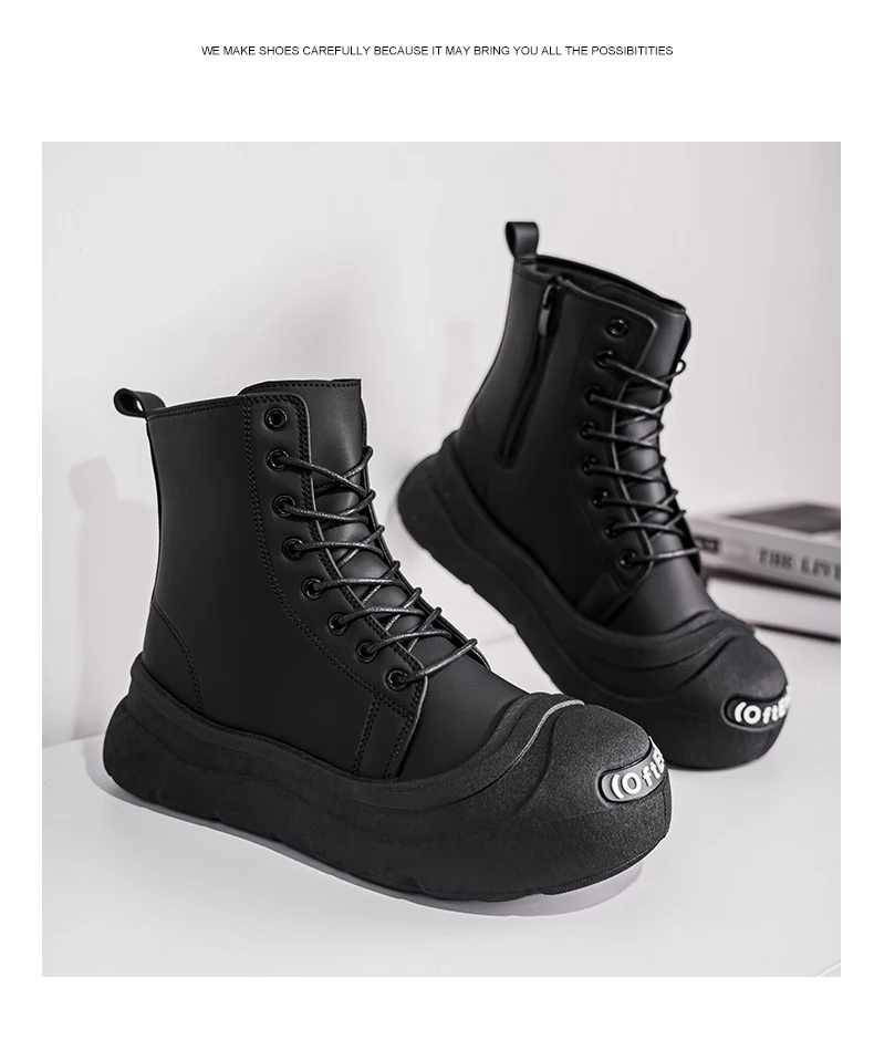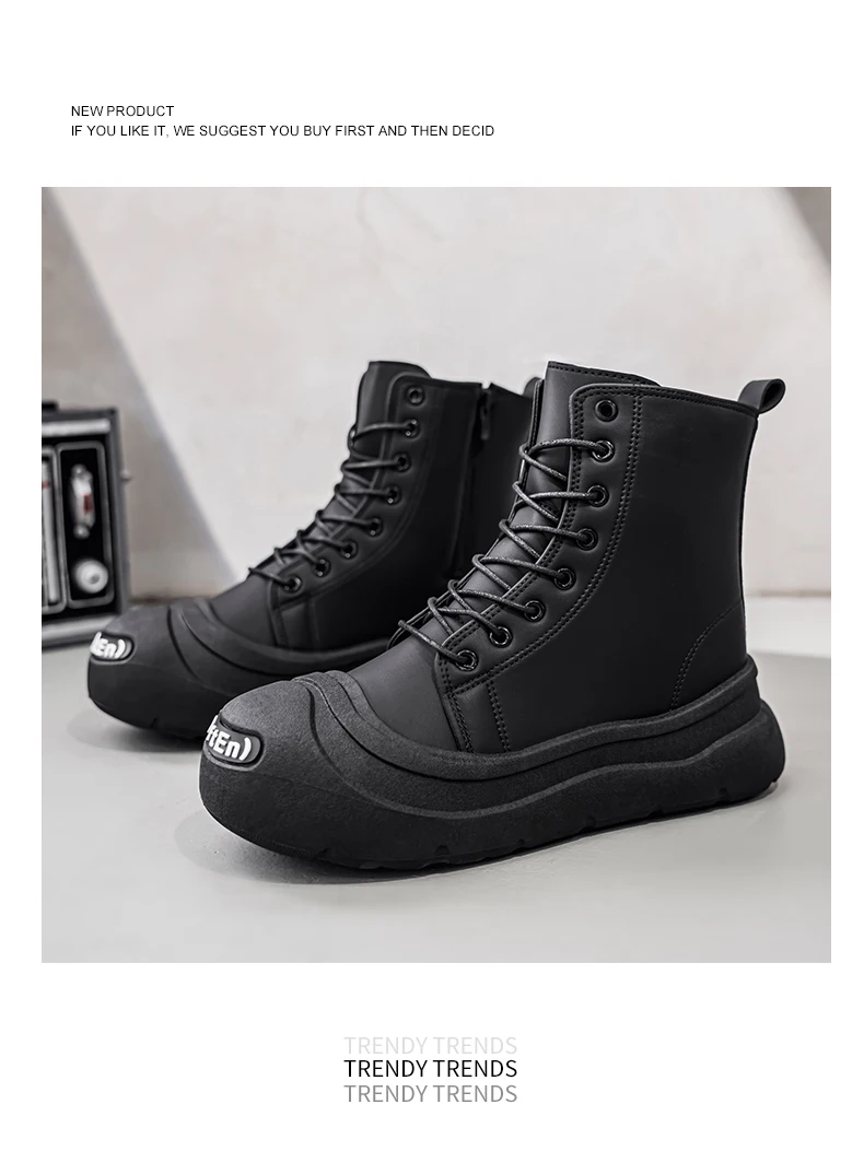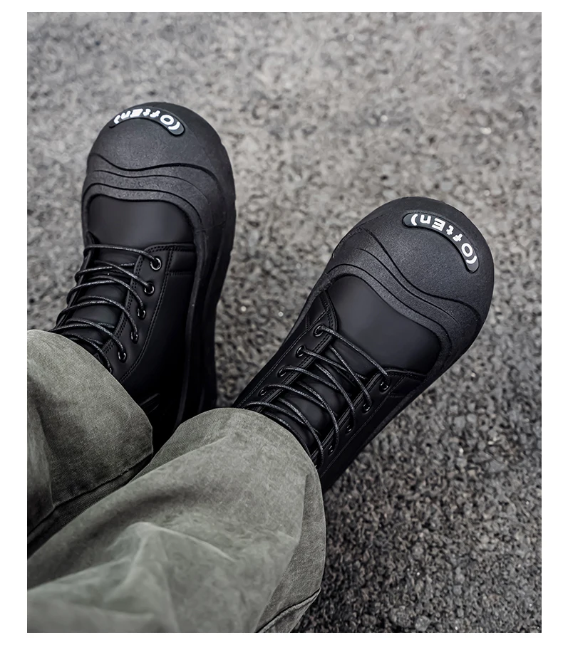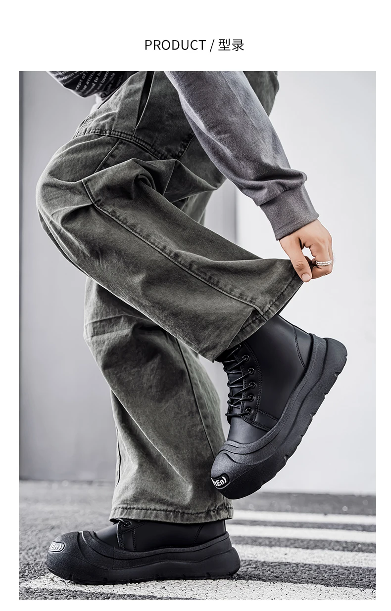 Large-size Autumn High-top Versatile Black Shoes, Men's Outdoor Anti-slip and Wear-resistant Casual Leather Boots