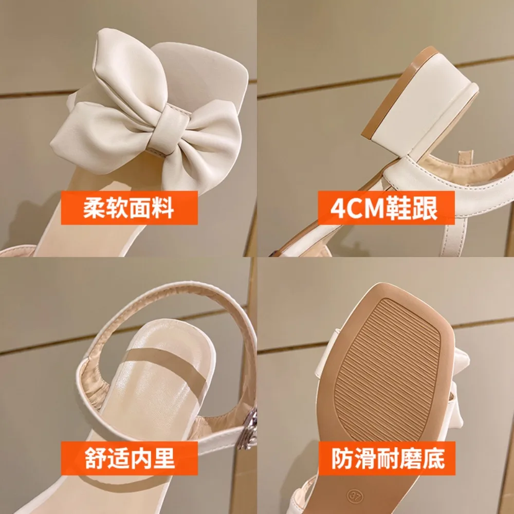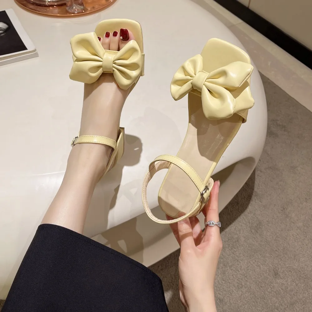 Large Solid Color Open-toe Sandals Women Summer New One-line Buckle Fashion Temperament Bow Knot Comfortable Women Shoes