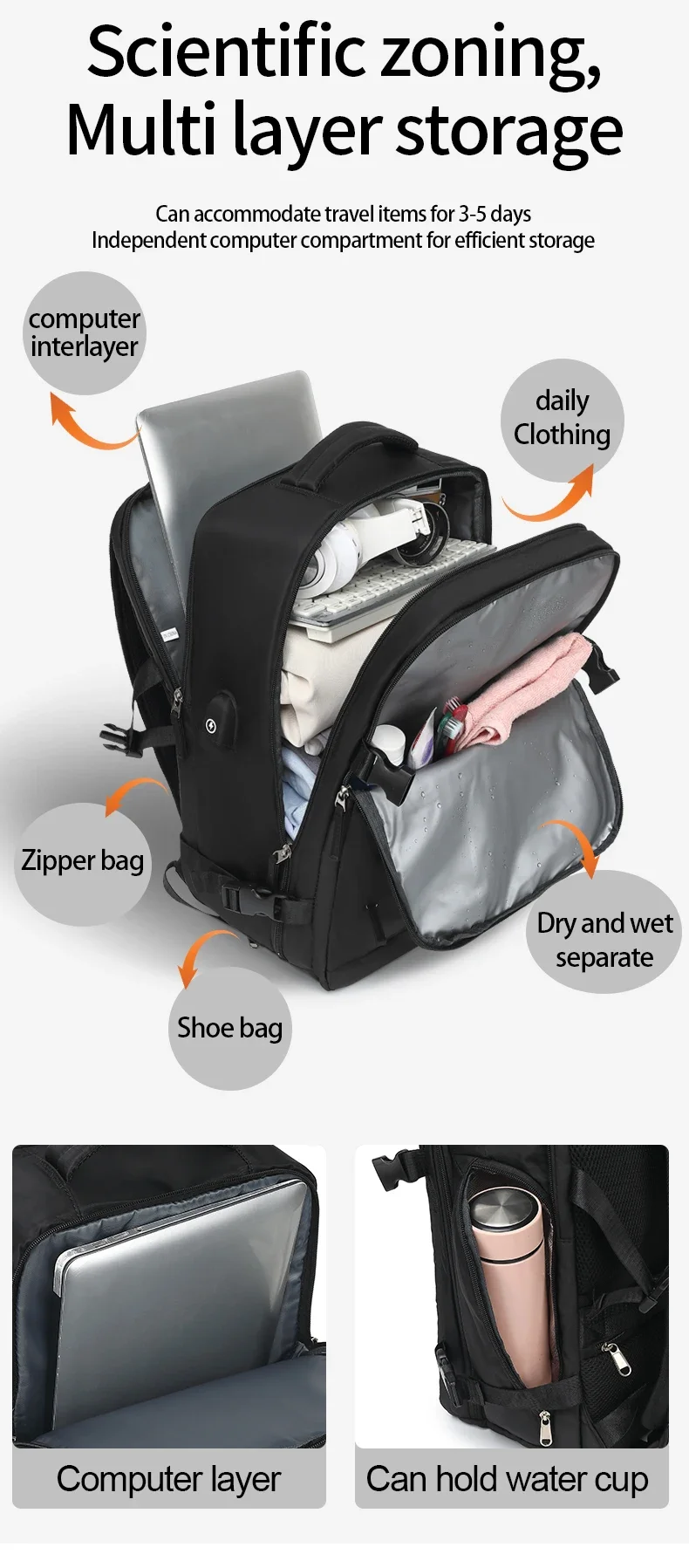 Large Travel Backpack Carry On Backpack Hiking Backpack Waterproof Outdoor Sports Rucksack Casual Daypack, School Bag