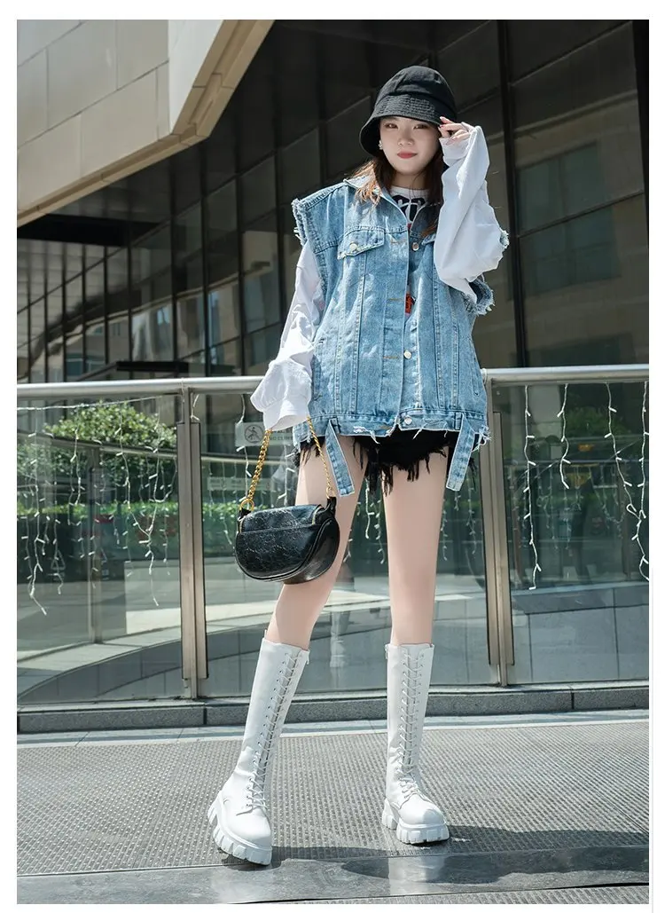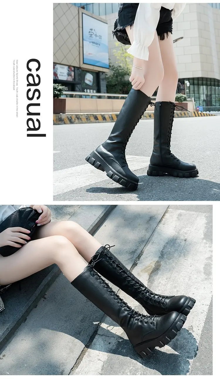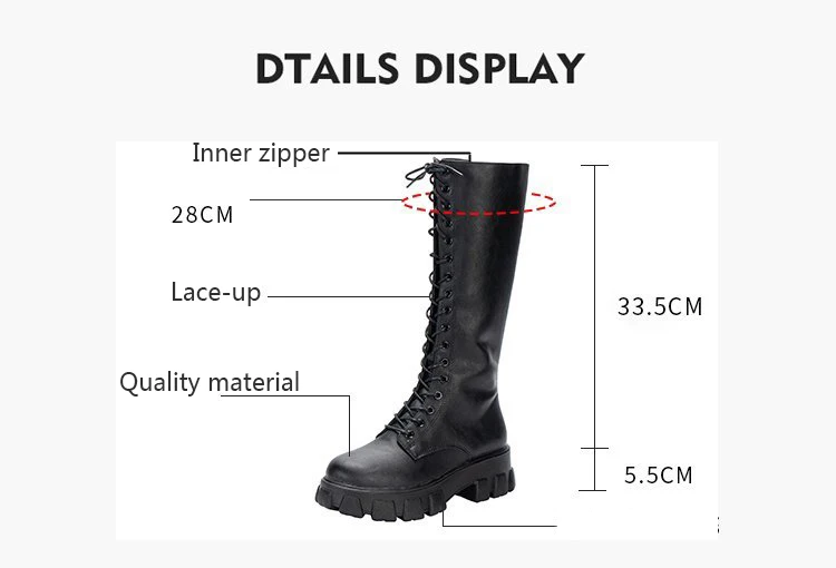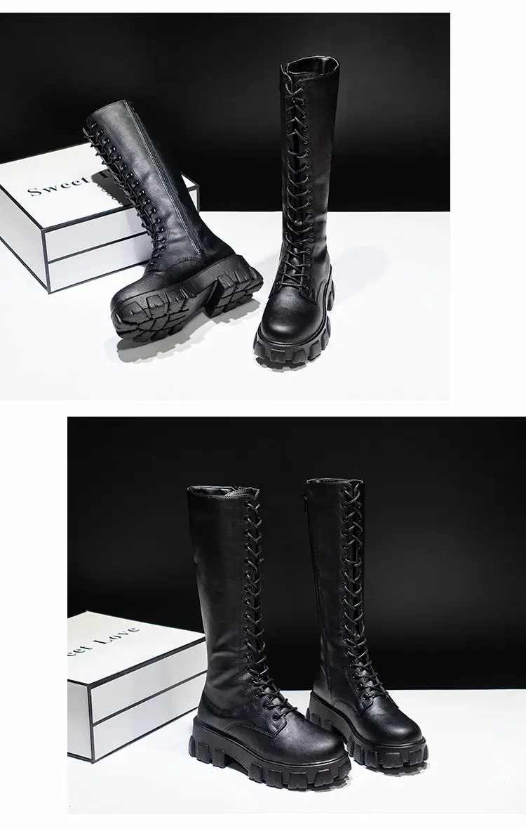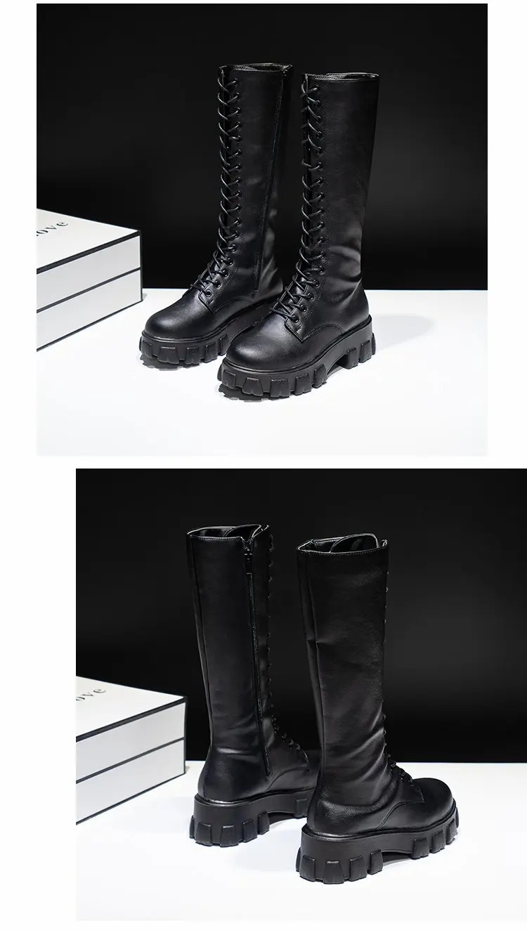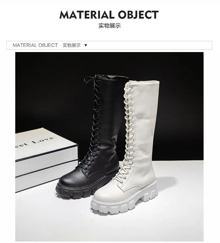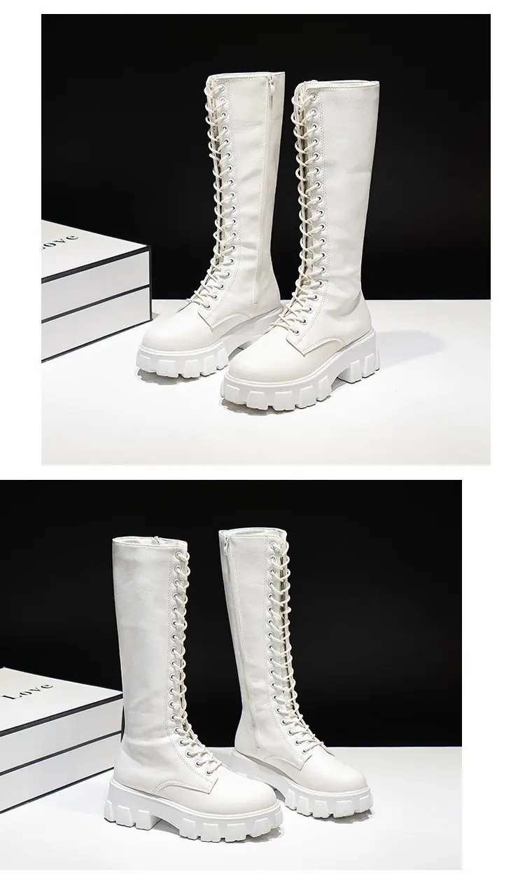 LazySeal Winter Long Boot Shoes Women White Lace Up Zip Height Increasing Pu Leather Shoes Plush Botas Mujer Big Size 43