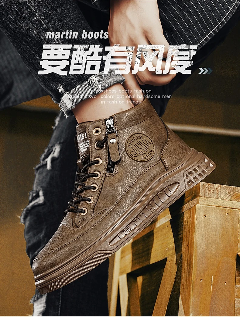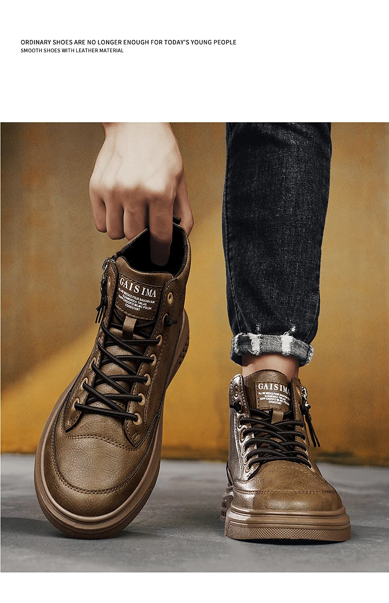 Leather Men Ankle Boots Fashion comfortable Men Sneakers Luxury British style High Top Shoes Men Platform Casual Shoes 2025 New