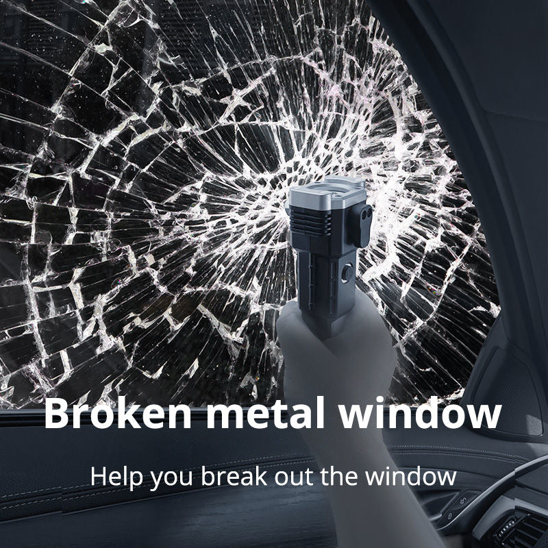 1. The left side of the flashlight is equipped with a high-hardness alloy safety hammer, and the right side of the head is equipped with a knife. it can be used to escape in an emergency.