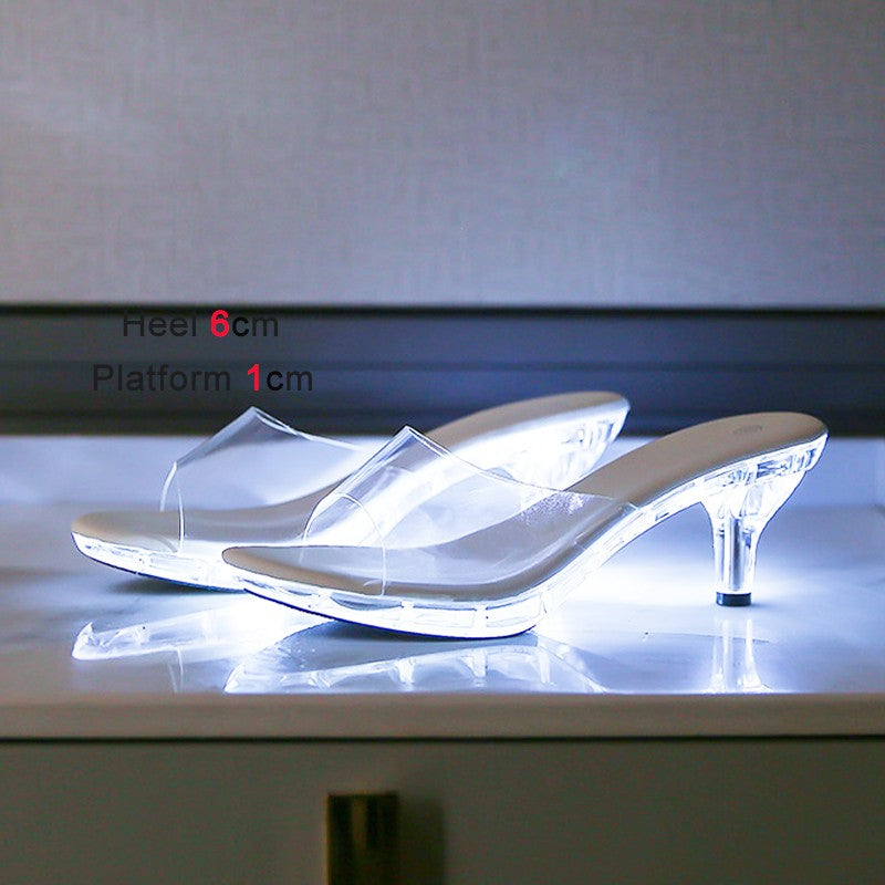 LED luminescent Sandals 6CM Kitten Heel Summer Fashion Nightclub Transparent Crystal Car Model Clear High Heels Girls Party Shoe