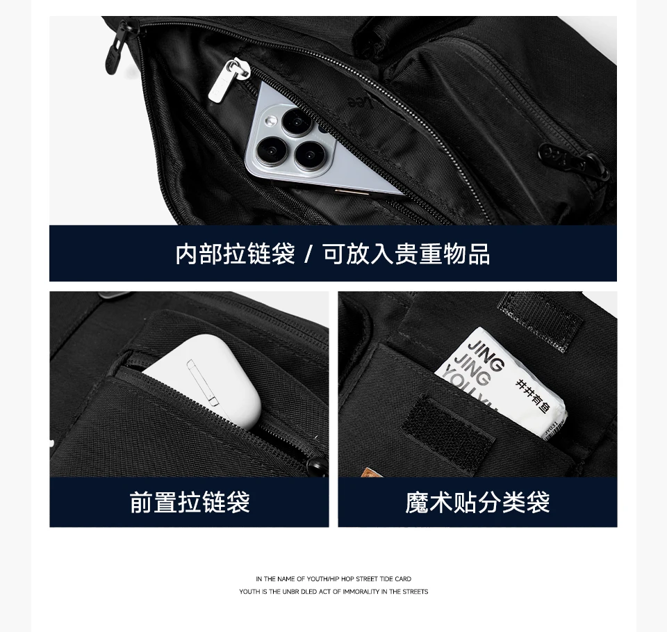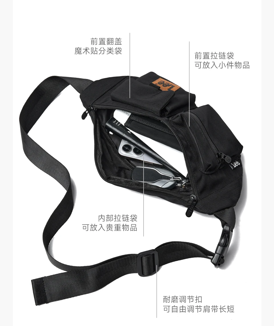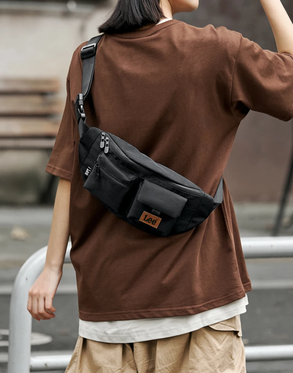 LEE Original Black Fashion Fanny Pack Women Men Korea Style Waterproof Nylon Crossbody Chest Bag Sport Phone Shoulder Waist Bag