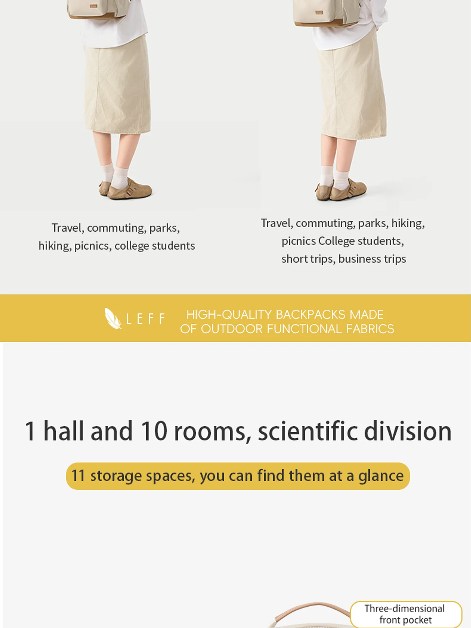 LEFF Women Backpack High Quality Large Capacity Laptop Backpacks Trendy Female Commuting Backpack Waterproof Outdoor Travel Bags