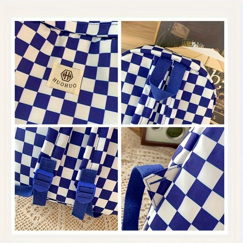 Leisure backpack korean version checkered contrasting color design, daily same class backpack, casual simple middle and high school package