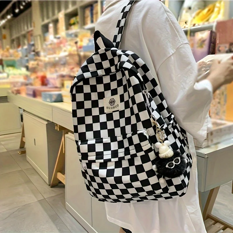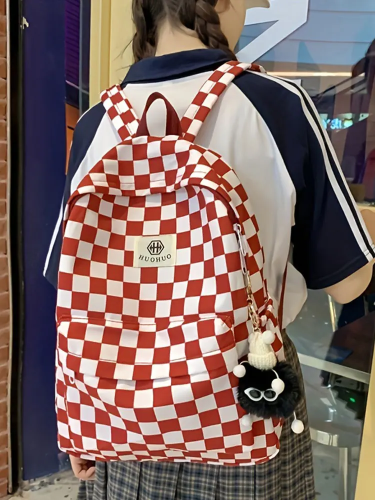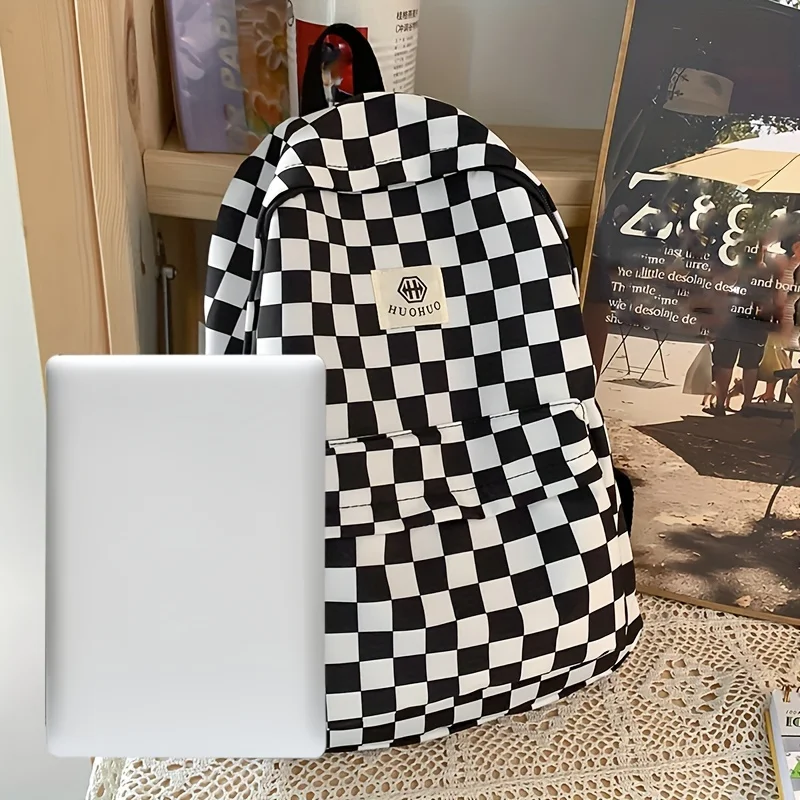 Leisure Backpack Korean Version Checkered Contrasting Color Design, Daily Same Style Backpack, Casual Simple Middle and High School Backpack