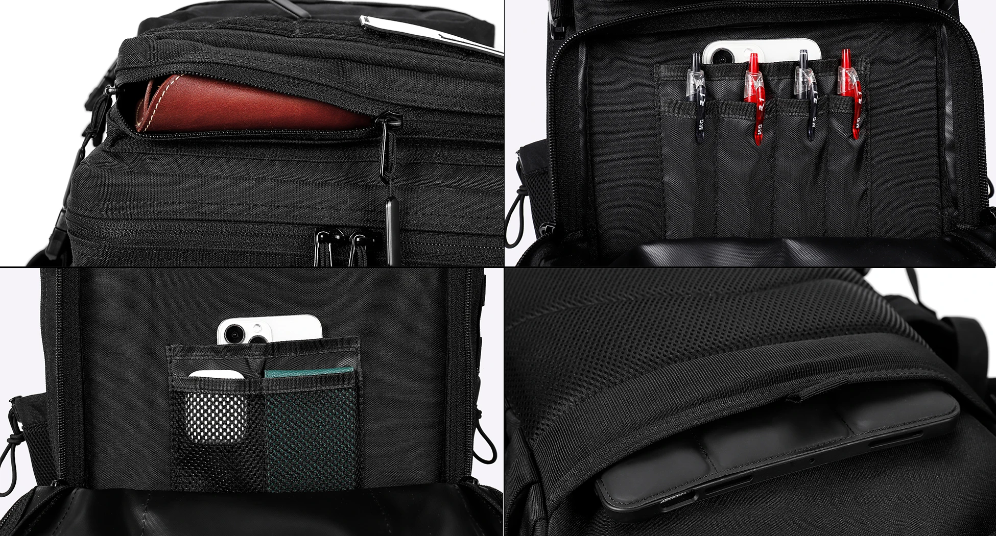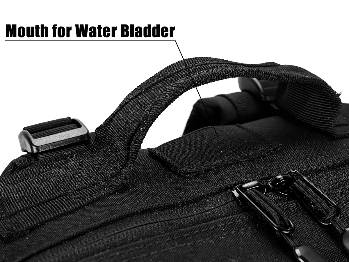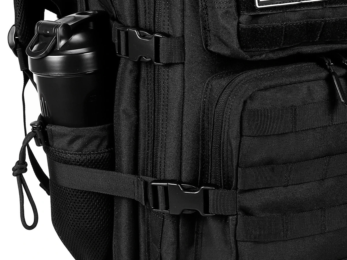· The tactical backpack has Cup Holders on both sides of the backpack and can fit 750ml water bottles, umbrellas, or tools.