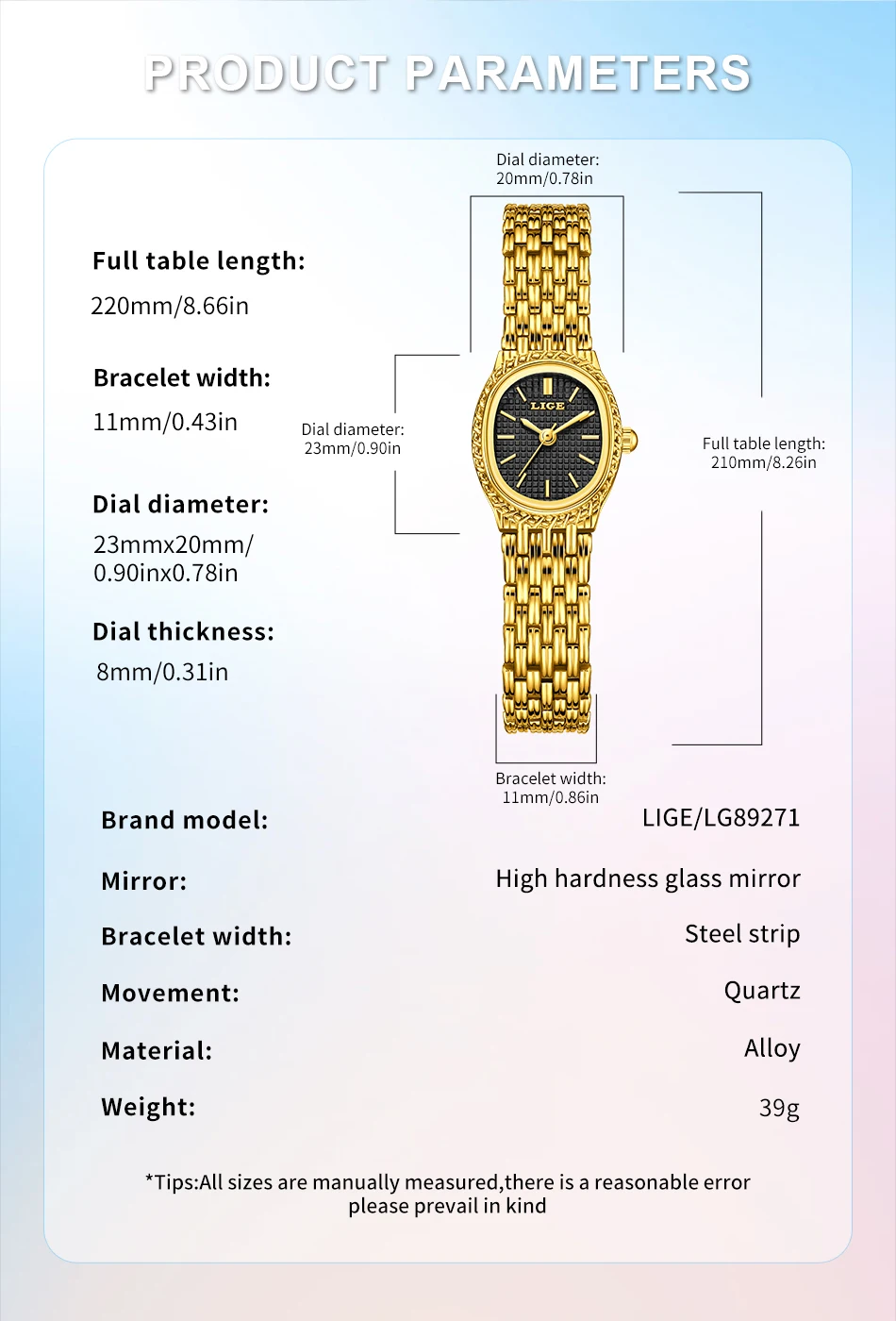 LIGE Golden Women Wristwatch Small Dial Ladies Gold Watch Bracelet Jewelry Quartz Lady Watch Compact Stylish Luxury Women Watch