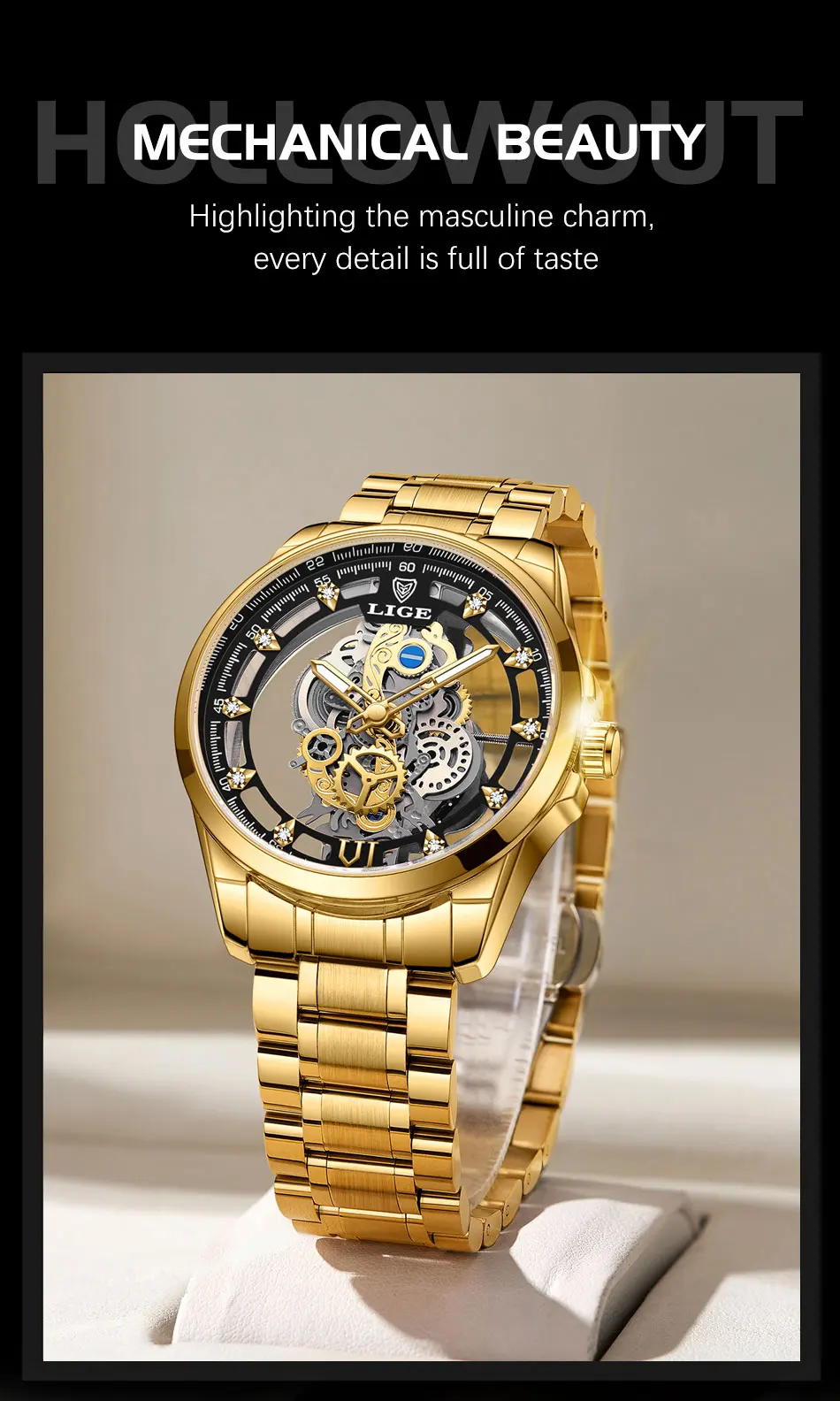• Luxury Design :The LIGE Men's Watch features a luxurious skeleton quartz design, showcasing the finest craftsmanship and top brand quality.