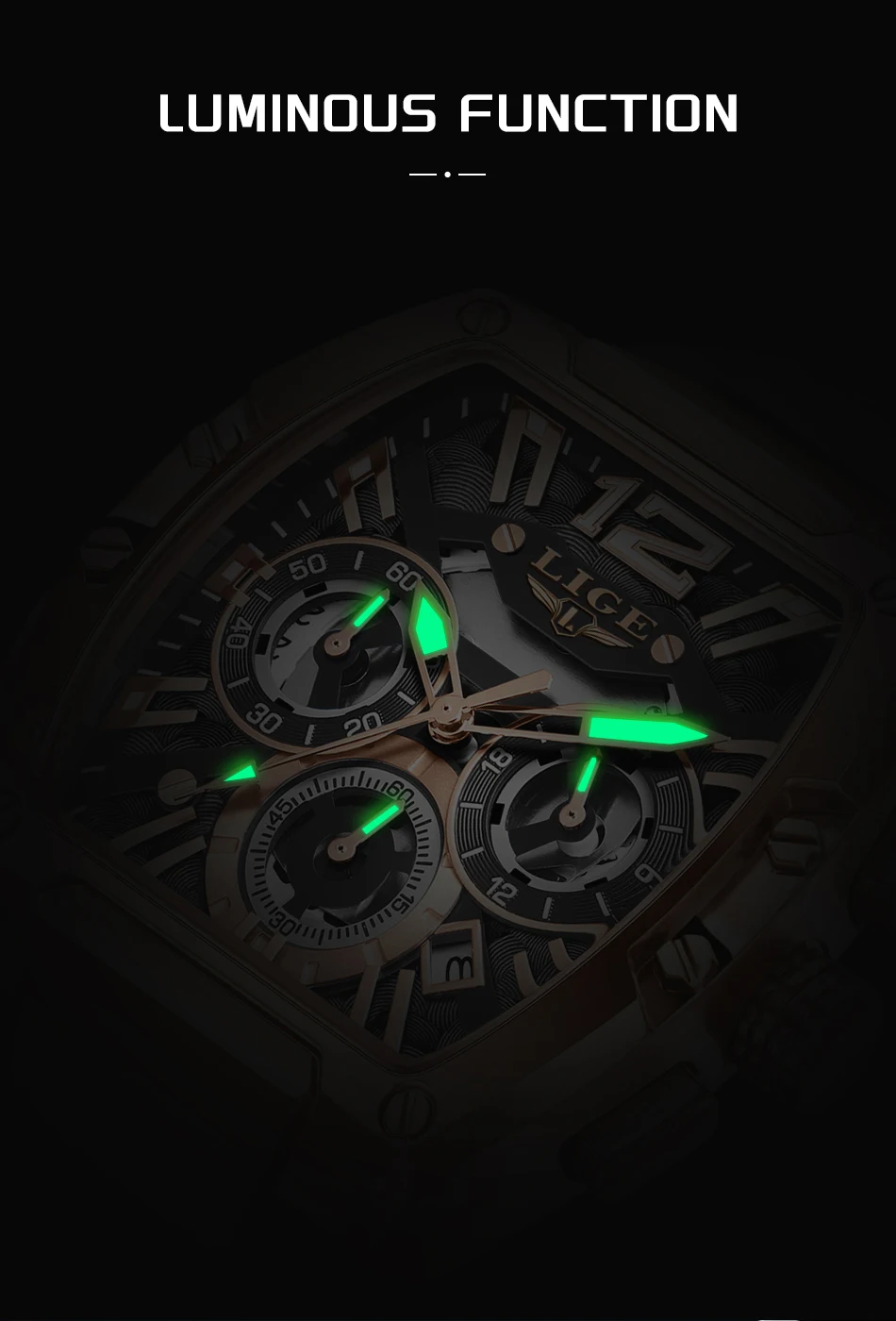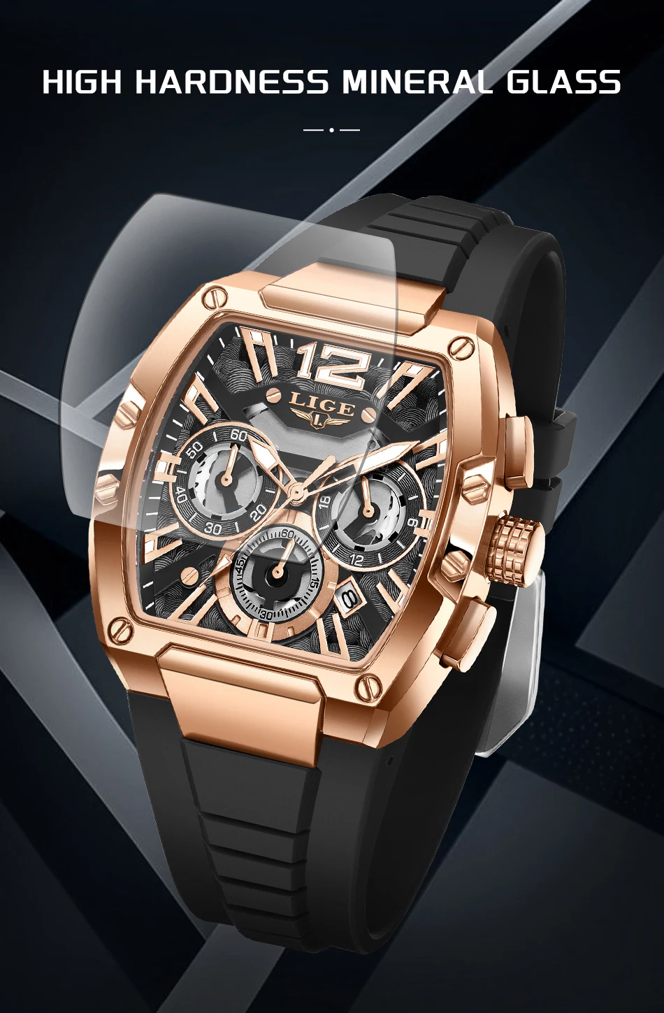 LIGE Sports Man Watch Tonnea Hollow Design Quartz Men Wristwatches Chronograph Waterproof Luminous Silicone Strap Watches Male