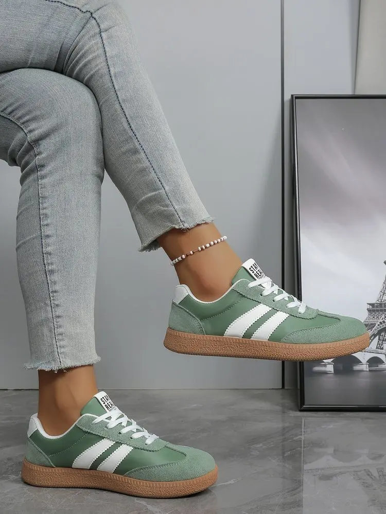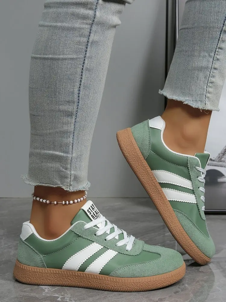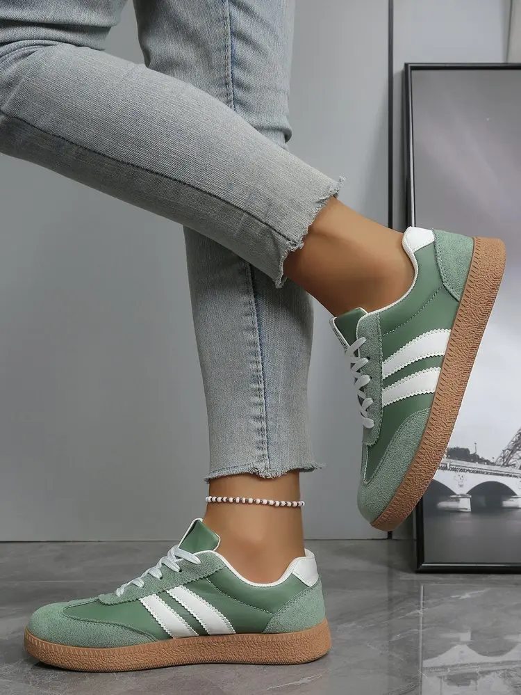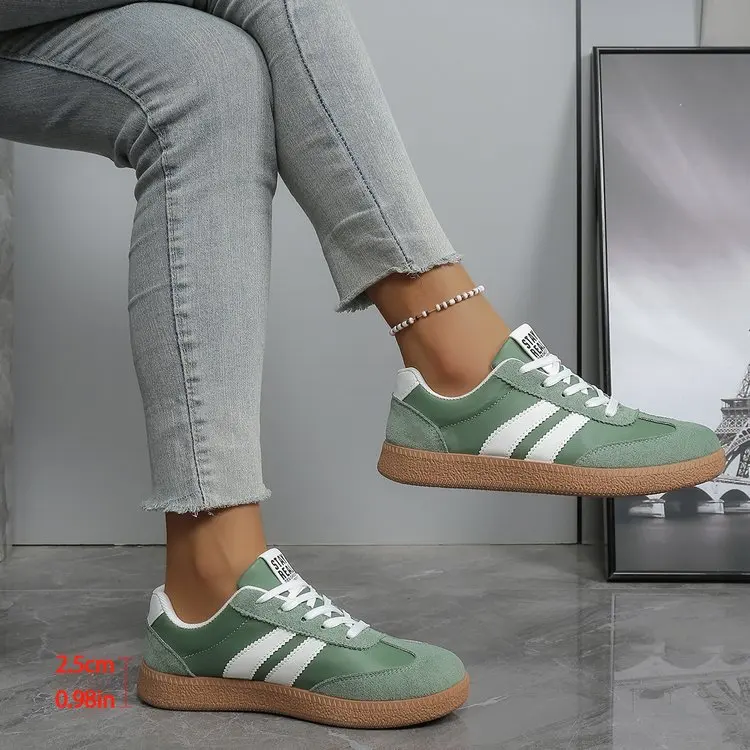 Lightweight Comfortable Sneakers for Women Fashion Striped Lace Up Sports Shoes Woman Casual Breathable Green Sneakers Plus Size