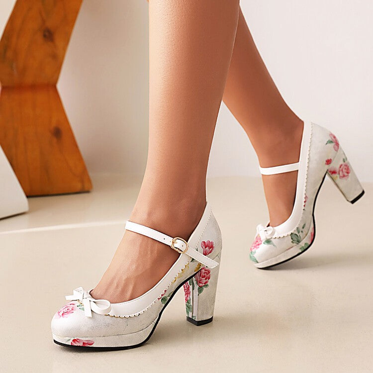 LIHUAMAO 2024 New design print flower Mary jane shoes platform pumps ankle strap round toe pumps party cosplay Ethnic style