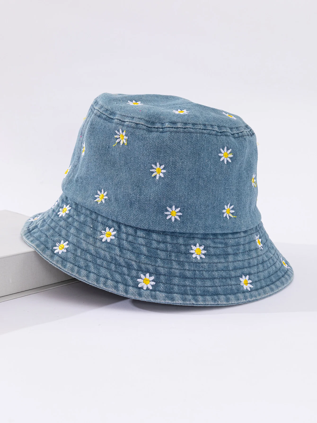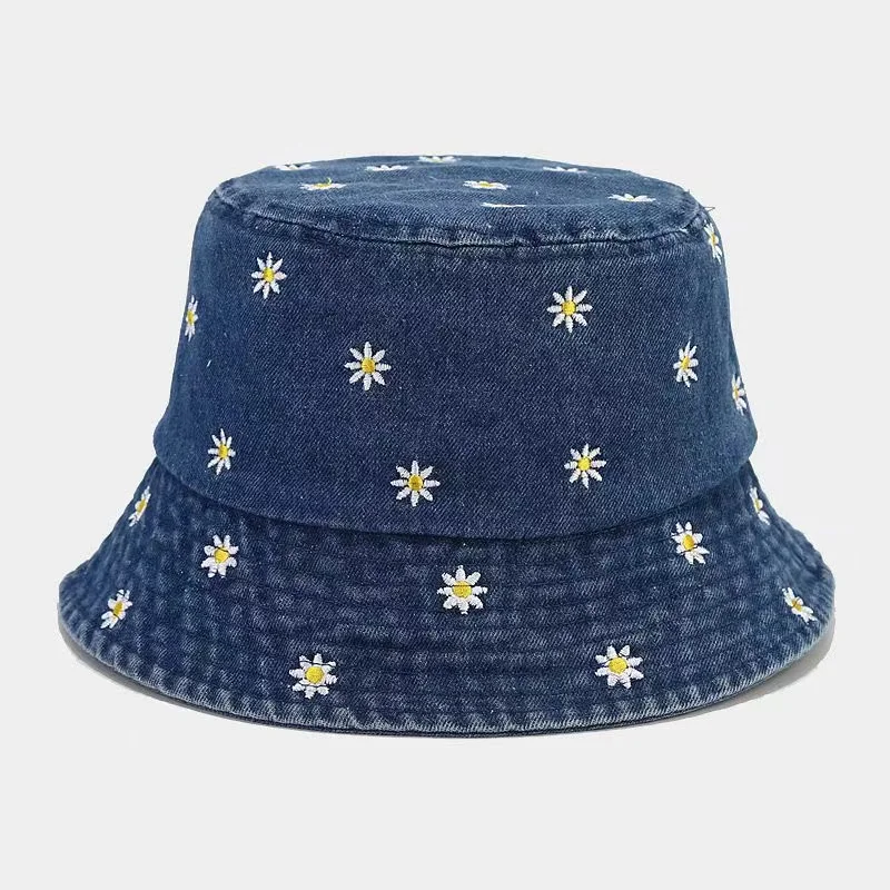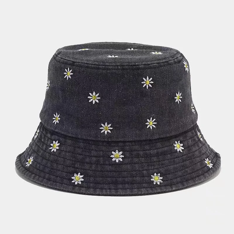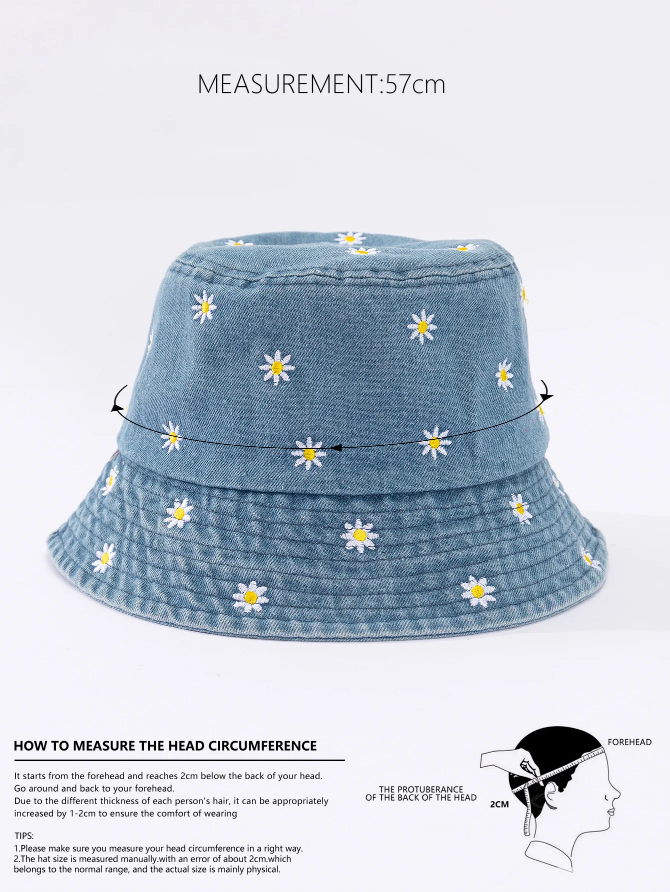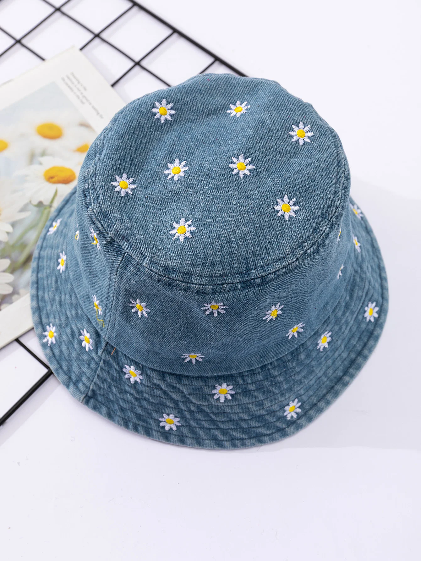 Little Daisy Embroidered Fisherman Hat for Women in Spring and Summer Fashion Versatile Sunshade and Sunscreen Show Small Face