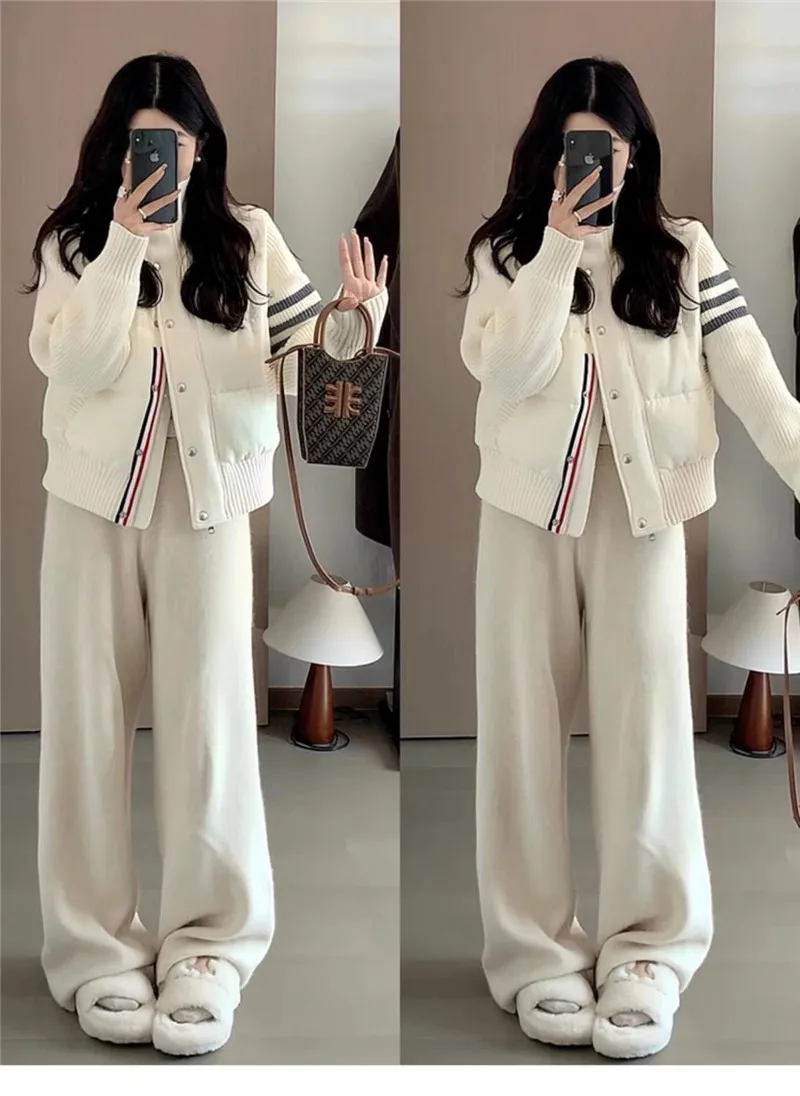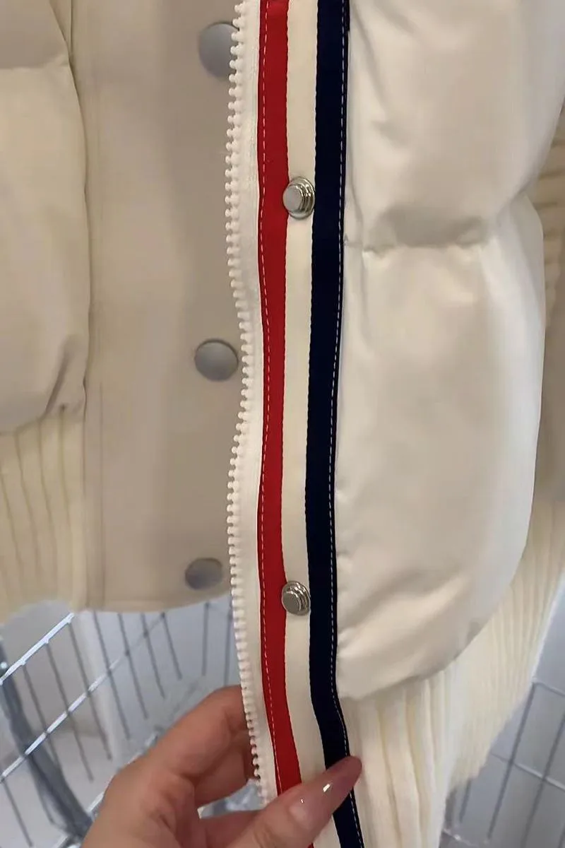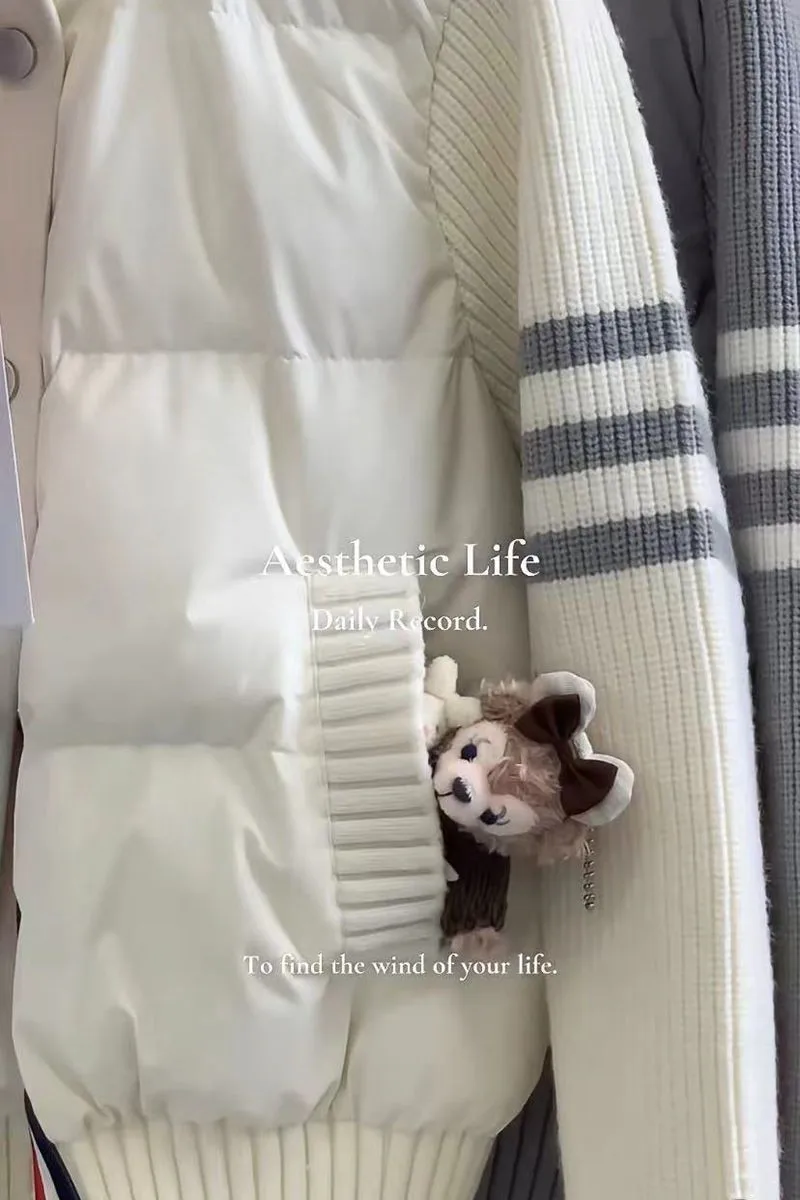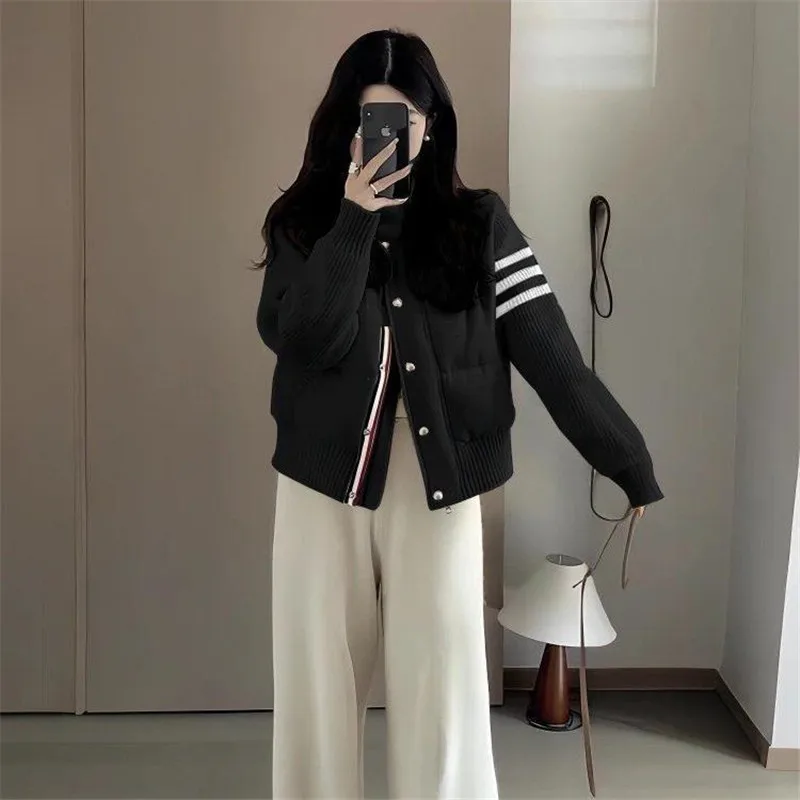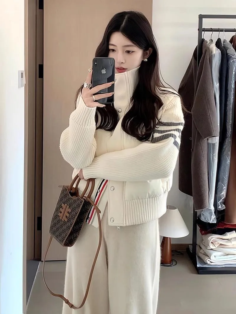 Little Women's Wear Knitted Stitching Coat Down Cotton-padded Short Female 2025 Winter Casual Jacket Loose Collar Thick Overwear