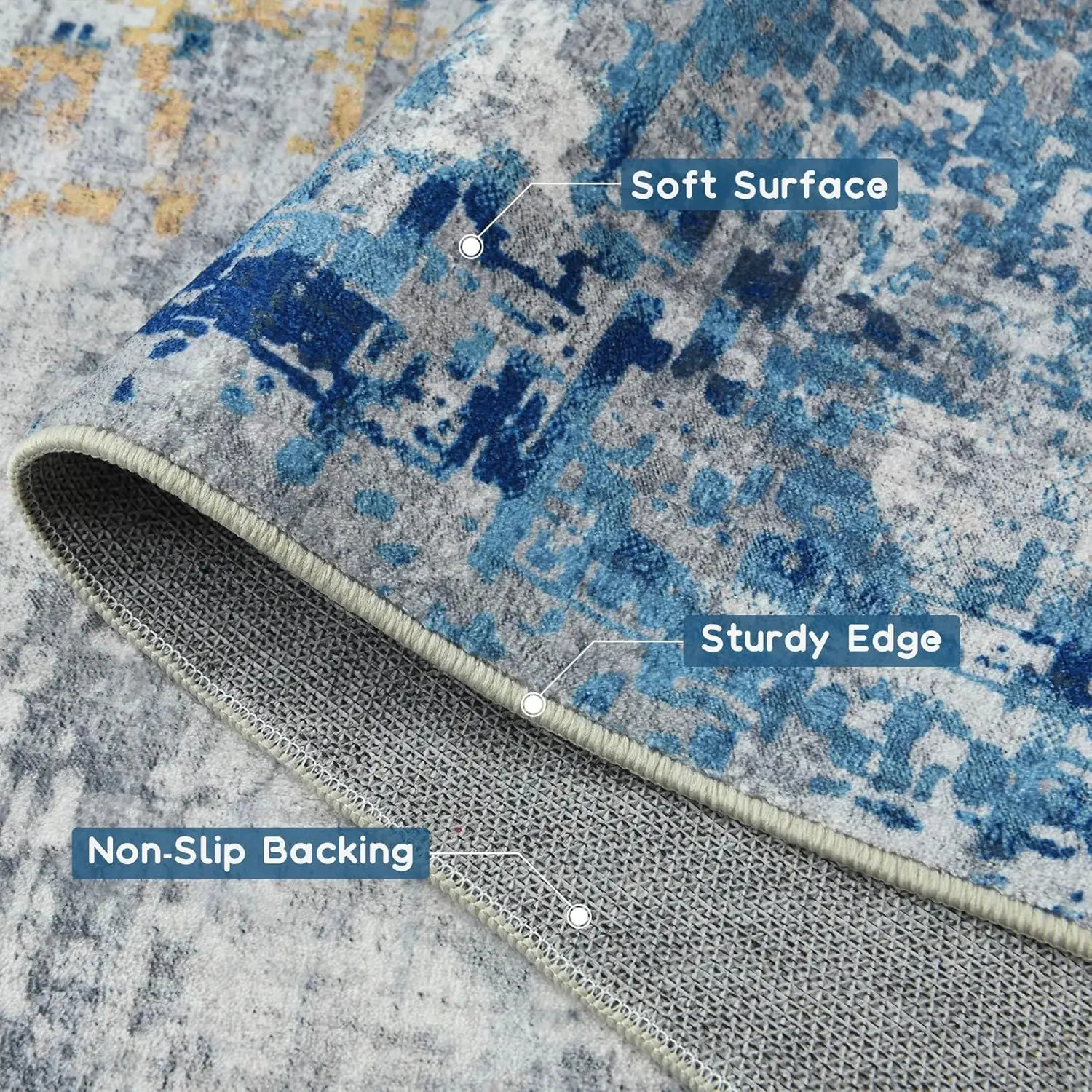 Upgraded Fabric: The skin-friendly fabric of faux wool makes your skin feel comfortable and your child's tender skin won't get hurt, this 5x7 blue abstract area rug is water resistant to ensure that liquids won't penetrate the rug after splashing, including water, coffee, wine, milk, juice, pet urine, It can be machine washed, hand washed and vacuum cleaned, easy to clean