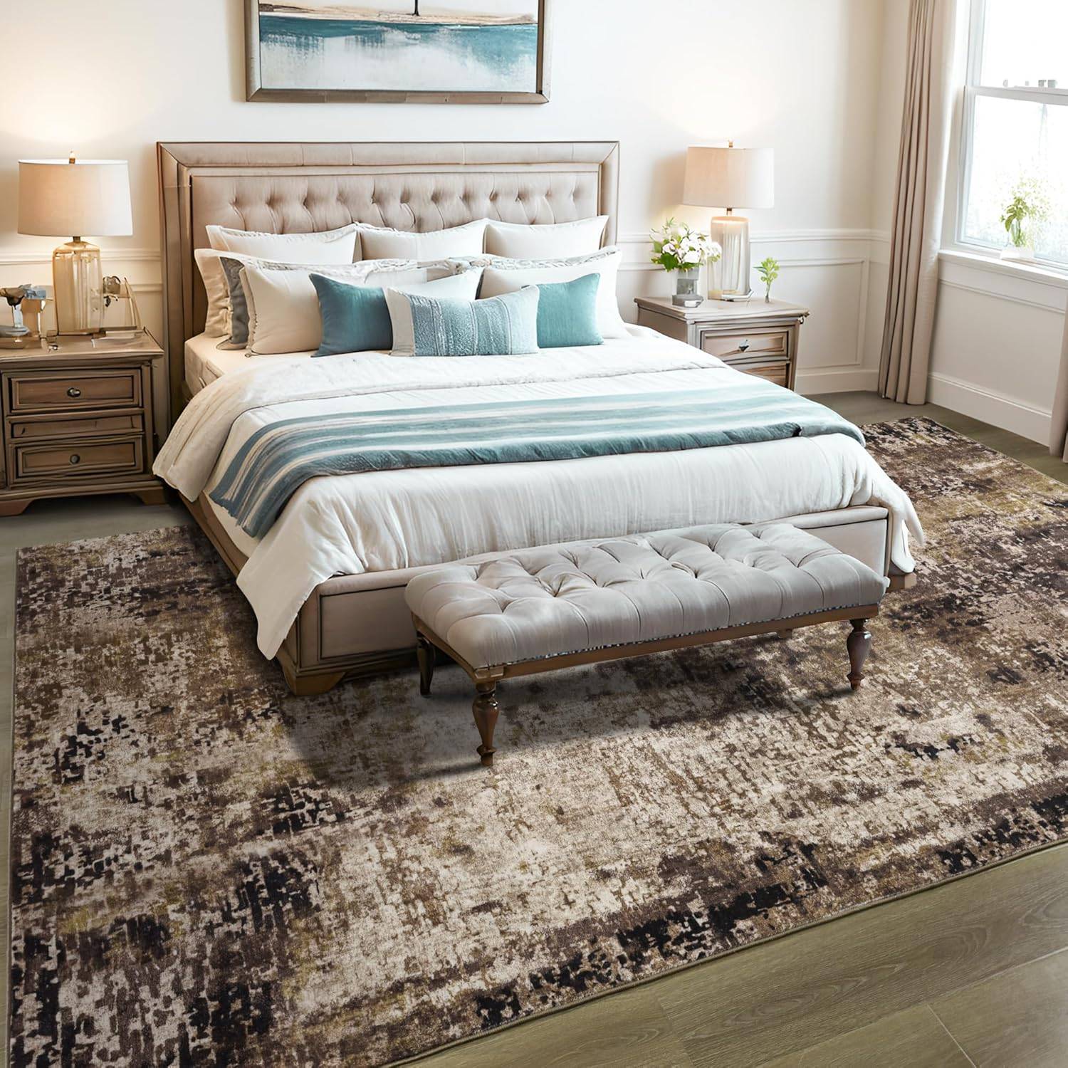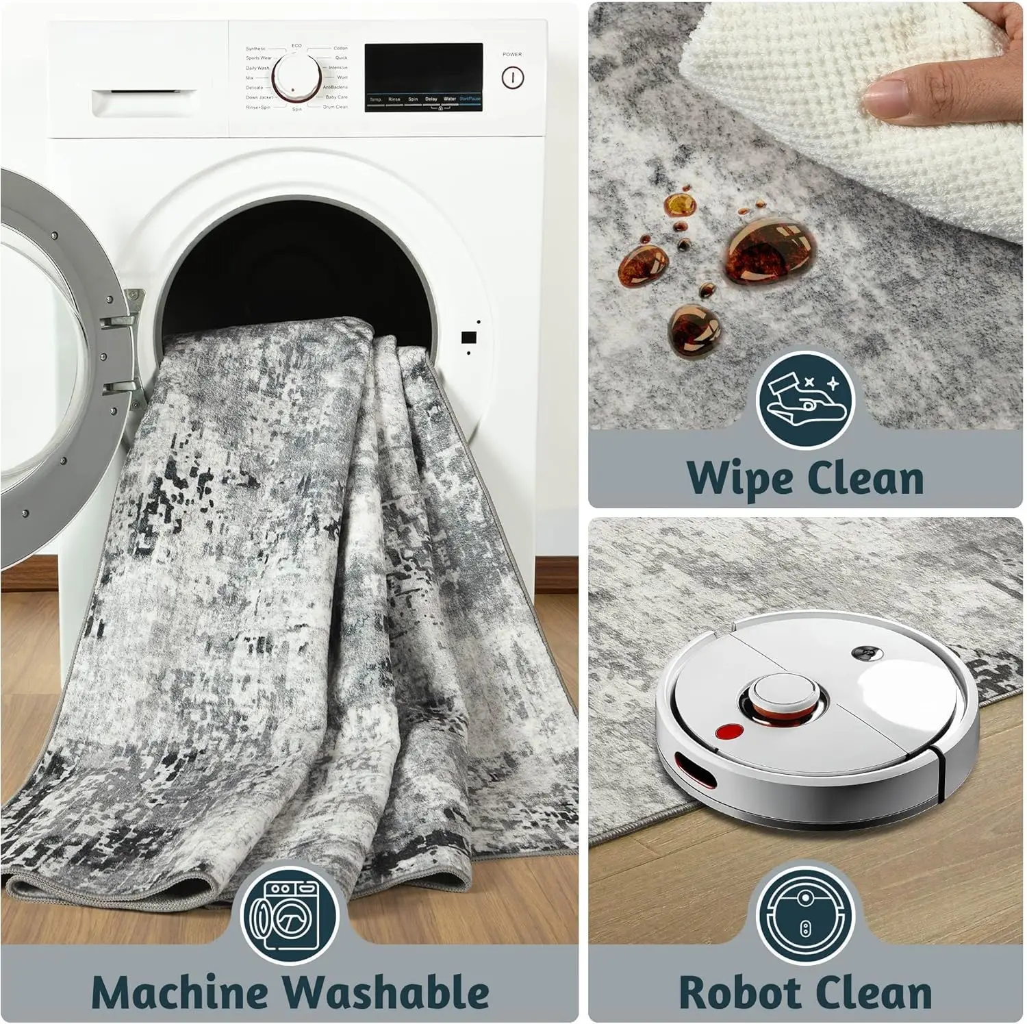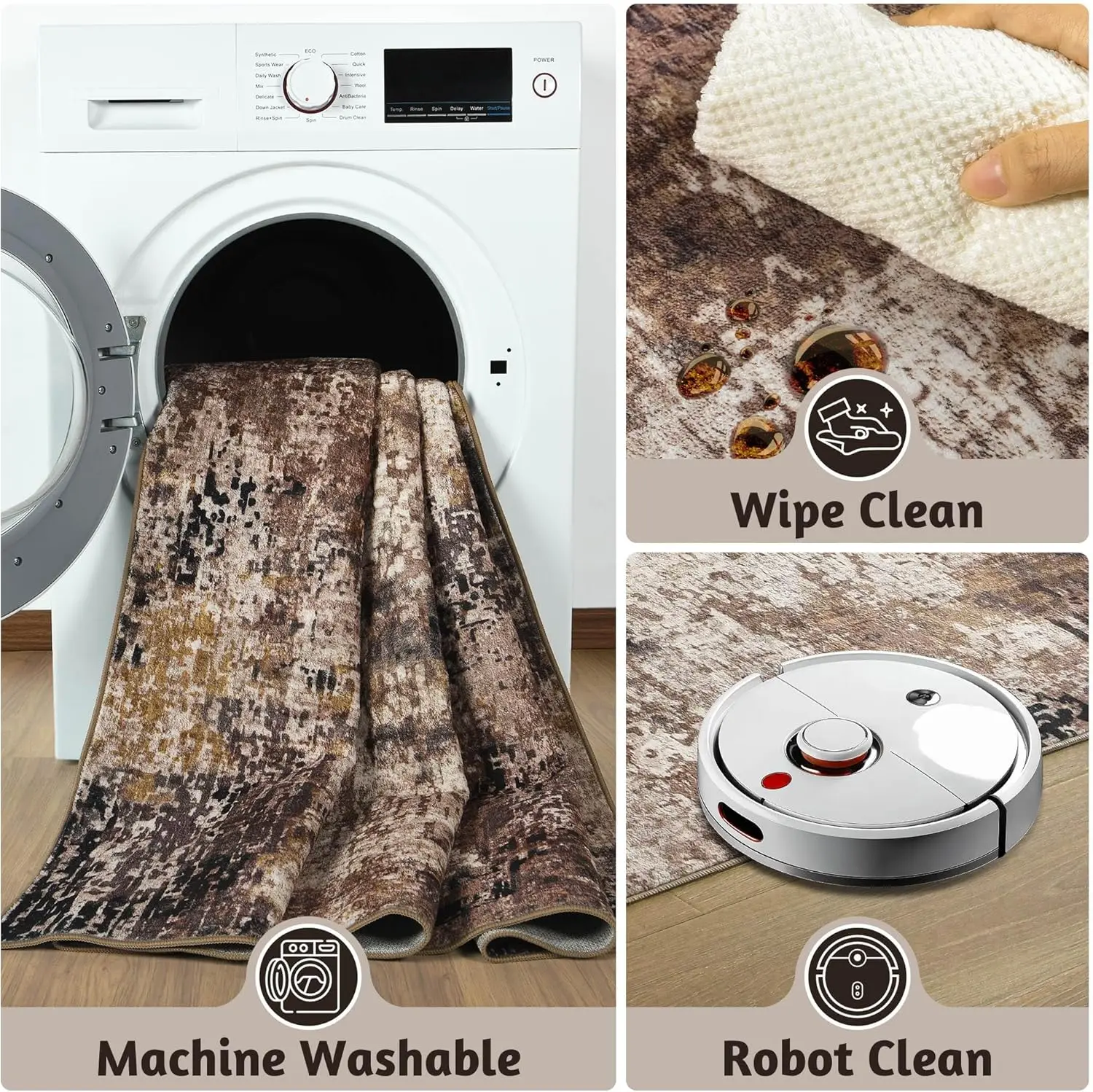 Living Room Area Rugs Soft Large Modern Abstract Area Rug, Boho Vintage Machine Washable Non Slip Carpet , Low Pile Rugs