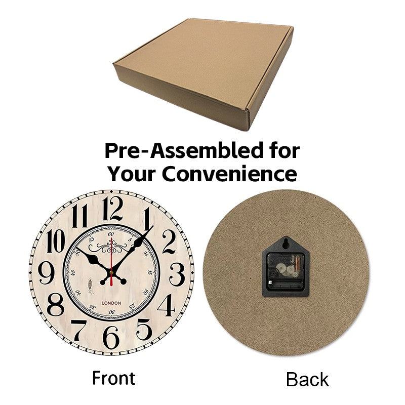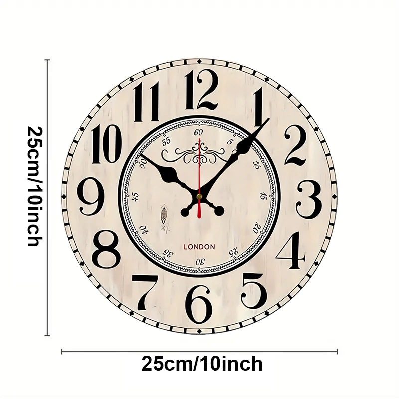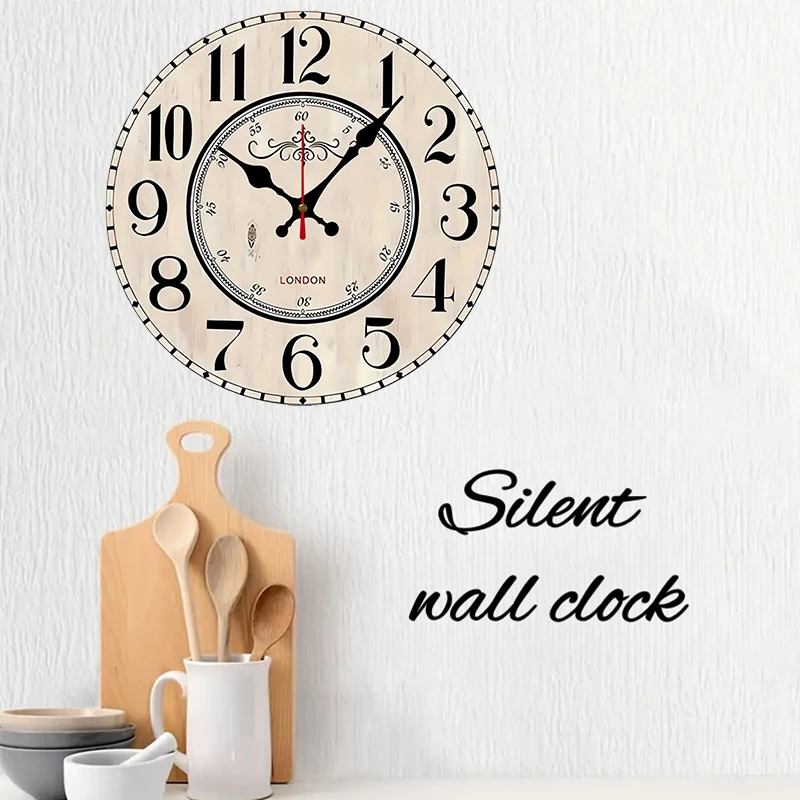 London Arabic Wooden Round Silent Hanging Wall Clock, Suitable For Living Room, Office, Study Room, Bedroom, Home Decoration