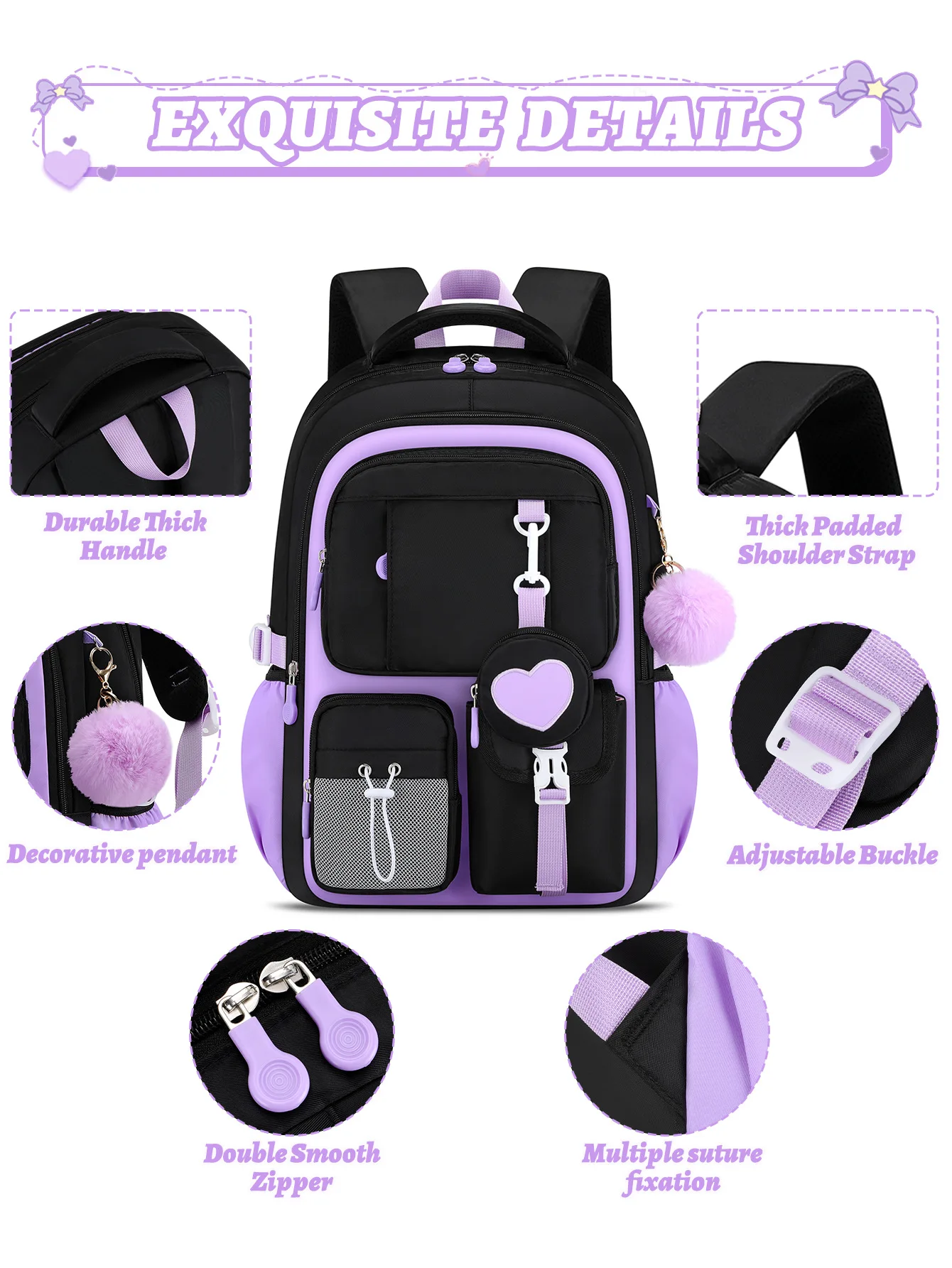 Love series elementary school backpack Lightweight large capacity and cute orthopedic school bags Middle school girls' backpacks