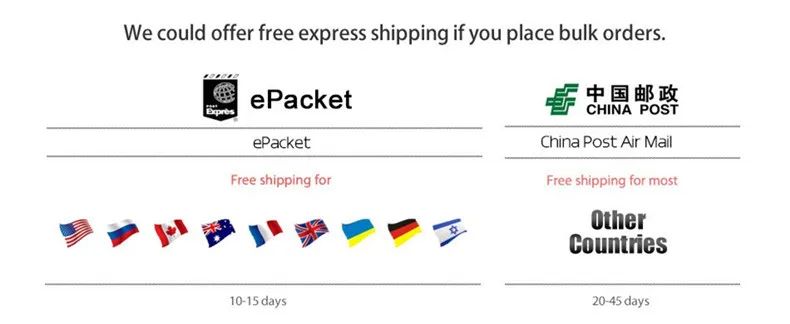 For wholesale,we will offer discount or free express shipping which only takes 3-7 days to arrive.