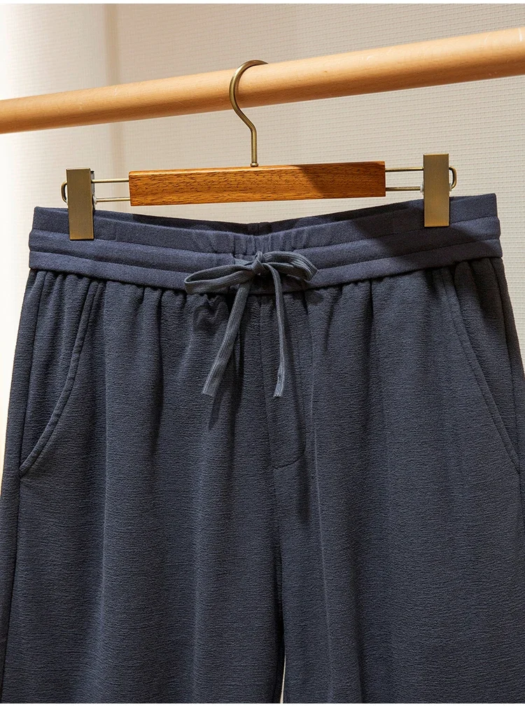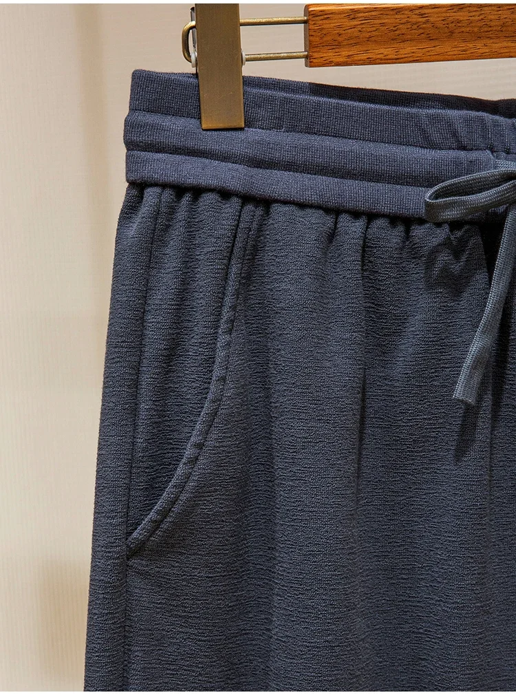LP high-grade custom-woven cotton fabric summer men's casual elastic waist drawstring sports shorts