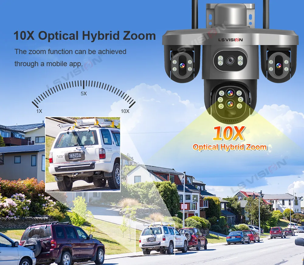 * This camera supports 10X Optical zoom, allowing you to zoom in/out on the observed object in the app, allowing you to see more details.