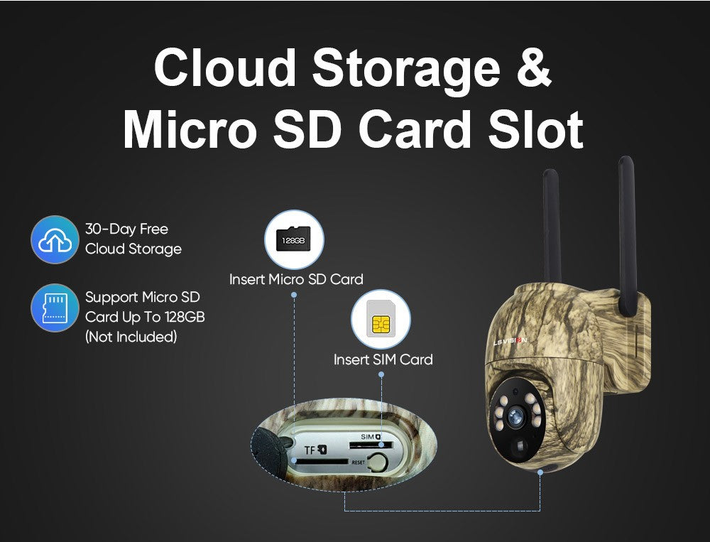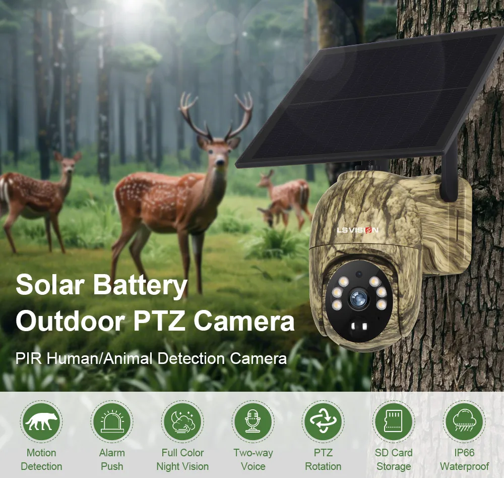LS VISION 2K 4G Solar Security Cameras WIFI Wireless Outdoor 360° Live View Animal Monitoring Camouflage Color Battery PTZ Cam