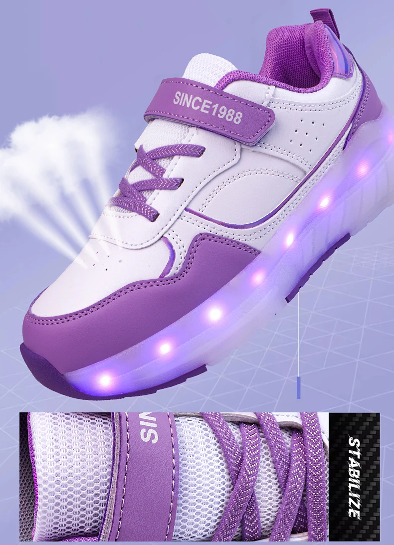 Luminous Roller Skate Shoes Wheels Removeable Sneakers Kids Roller Shoes USB Charge Light Up Sport Skate Board Shoes Boys Girls