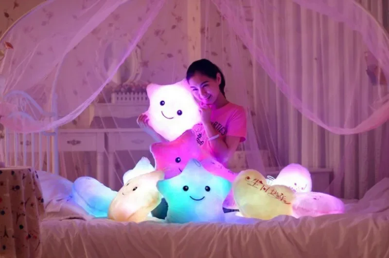 Luminous Star Plush Throw Pillow Bright Led Light Star Stuffed Cushion Sofa Decorative Pillow Office Sleeping Back Cushion Decor