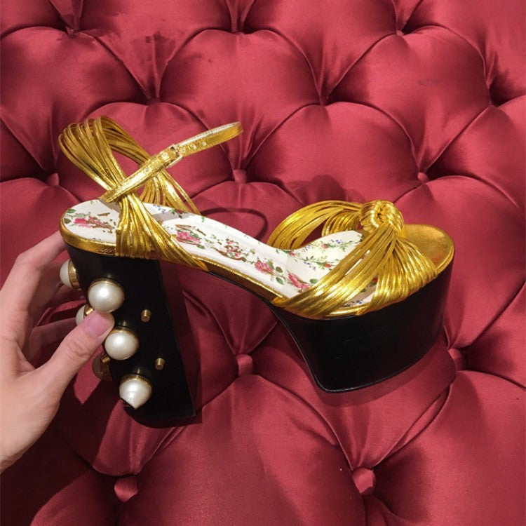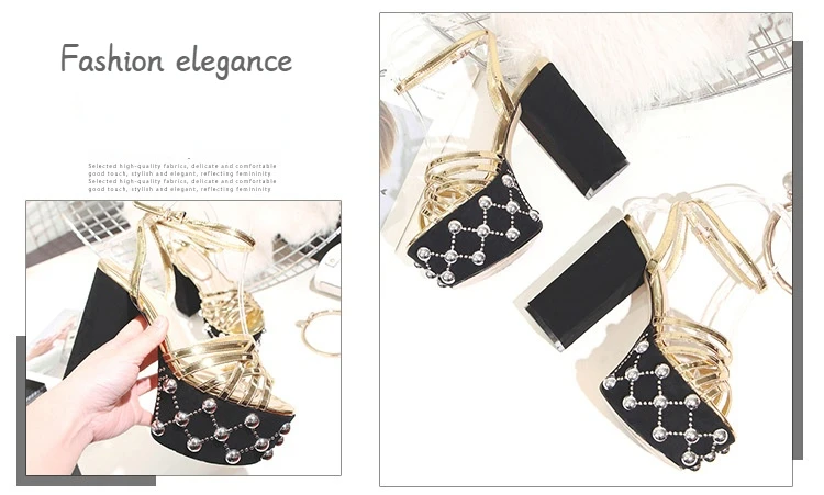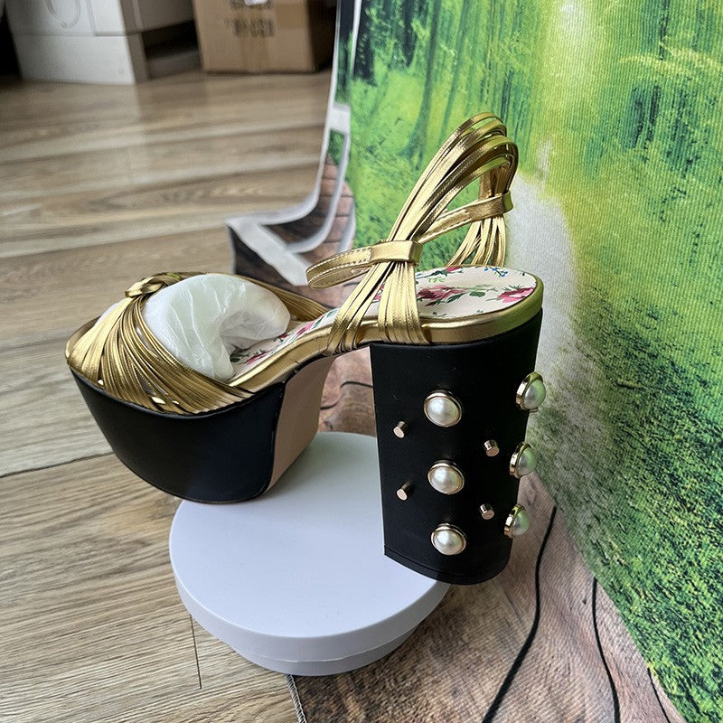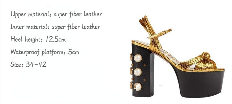 Luxury Brand Women's Summer Fashion Metal Platform Sandals Large 34-42 Super High Heel Thick Bottom Rivet Party Women's Shoes