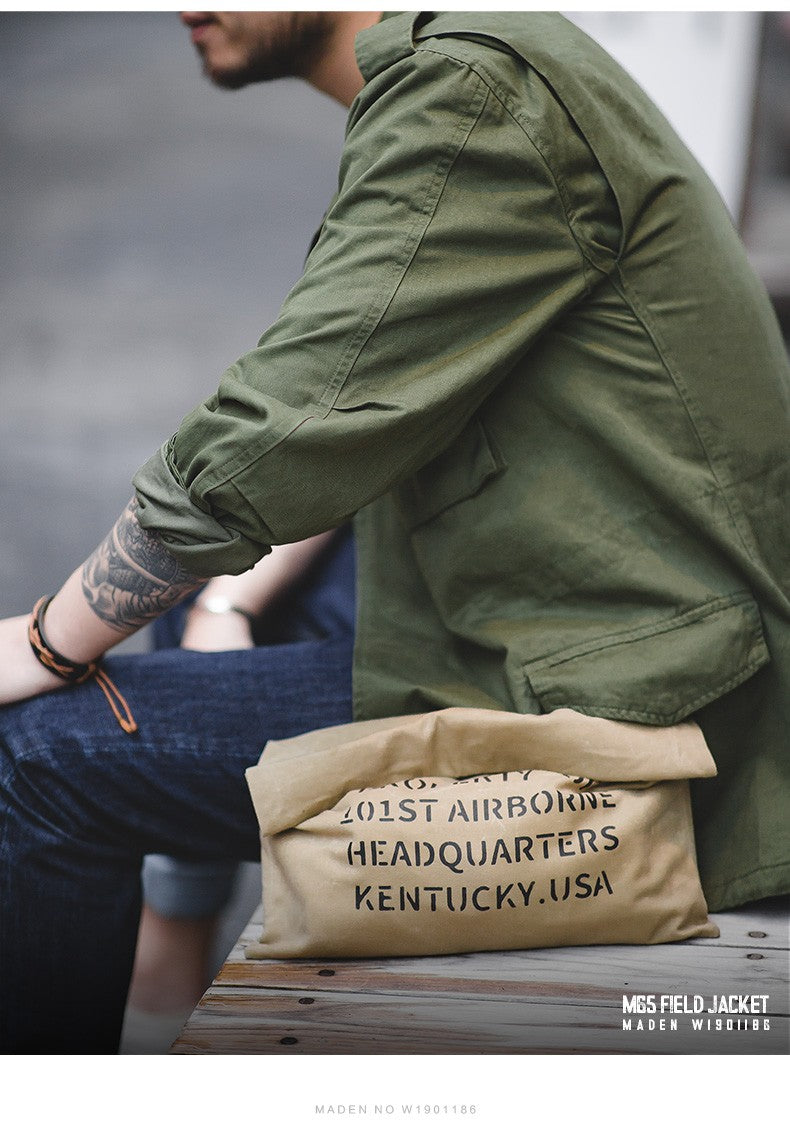 Maden Military M65 Field Jackets For Men's Green Vintage Army Jacket Casual Windbreaker Solid Lapel Collar with Pockets Overcoat