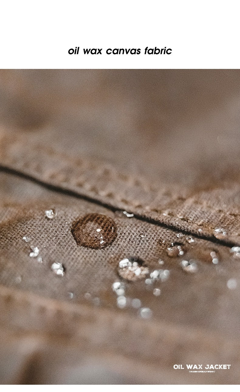 Maden Retro Heavyweight Canvas Oil Waxed Jacket Cotton Waterproof Hunting Coat Male Spring Khaki Casual Work Safari Style Jacket