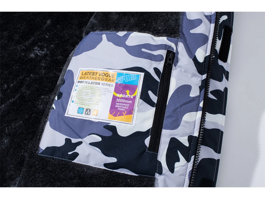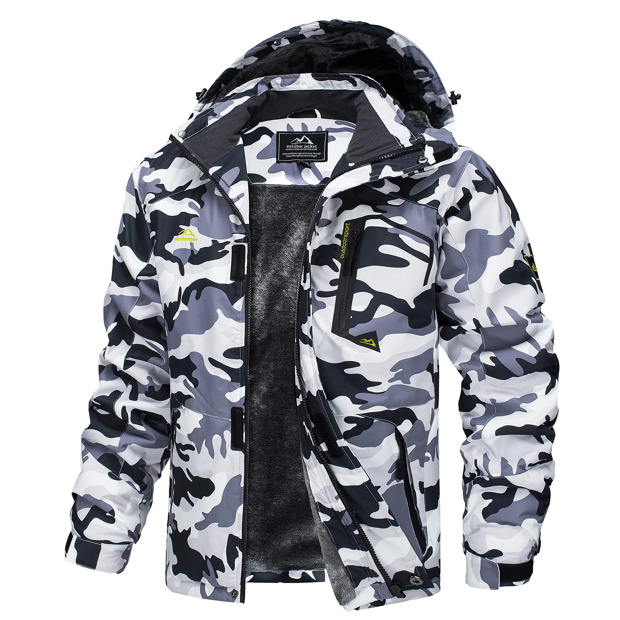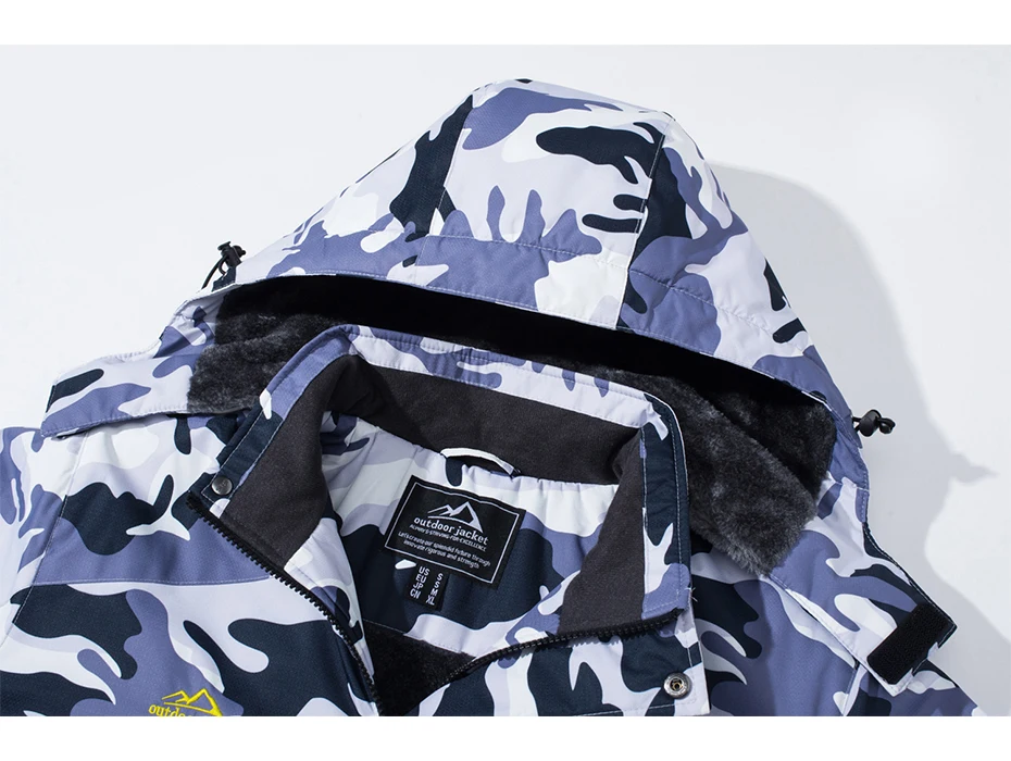 MAGCOMSEN Fleece Ski Jacket Men's Hooded Waterproof Thermal Thick Warm Camo Parka Removable Hooded Coats Winter Snowboard Anorak