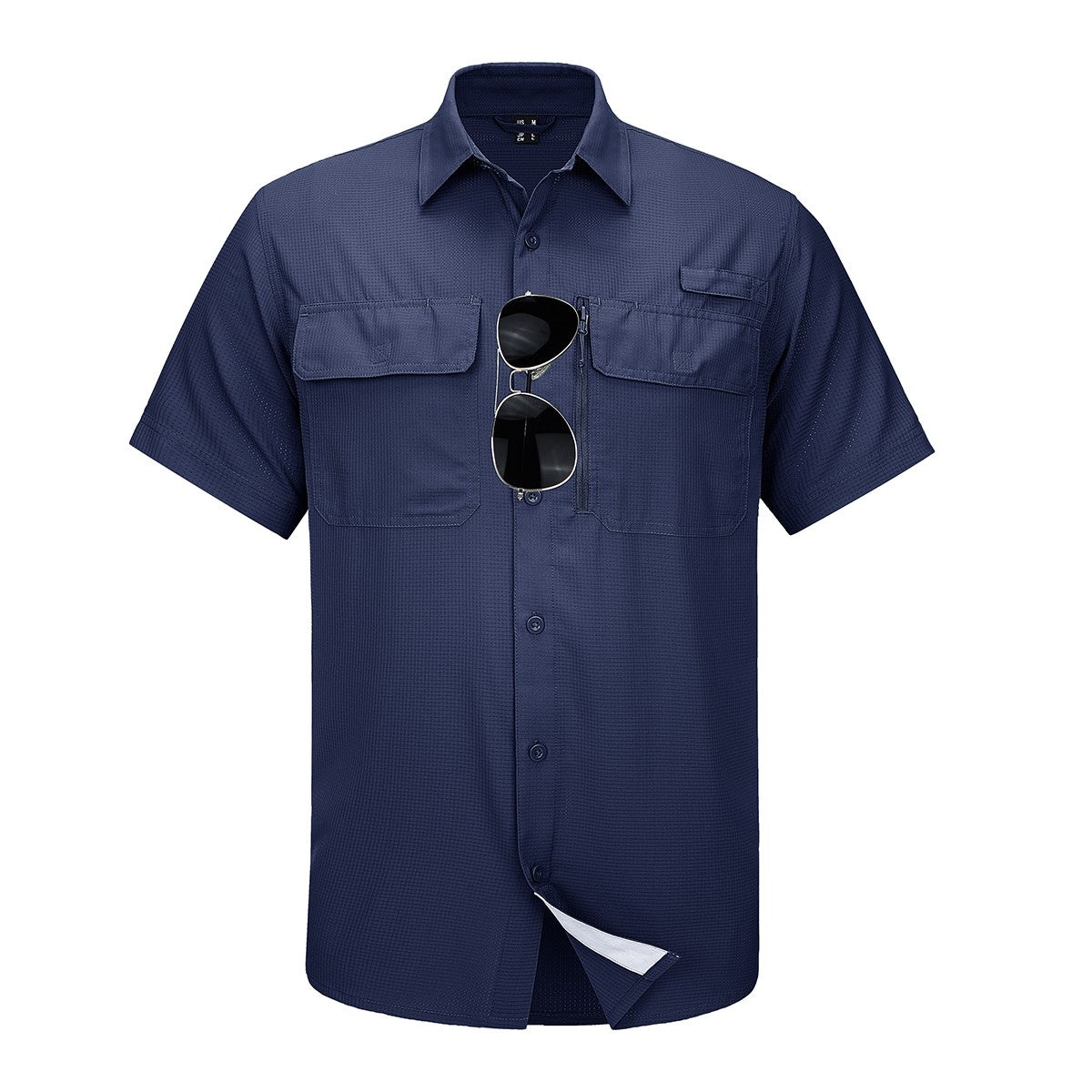 MAGCOMSEN Mesh Breathable Shirt Men's Quick Dry Button Short Sleeves UPF 50+ Sun Protection Hiking Fishing Work Cargo Shirts
