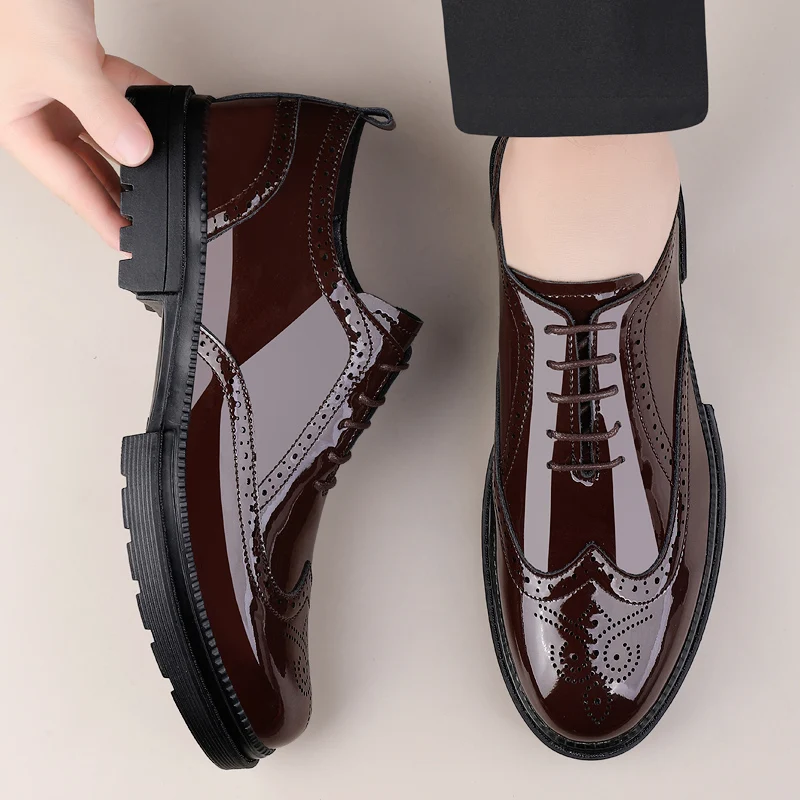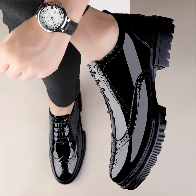 Male Brogue Shoes Thick Bottom Brand Mens Oxfords Shoes Men Patent Leather Fashion Smooth Coiffeur All-match Men's Wedding Shoes