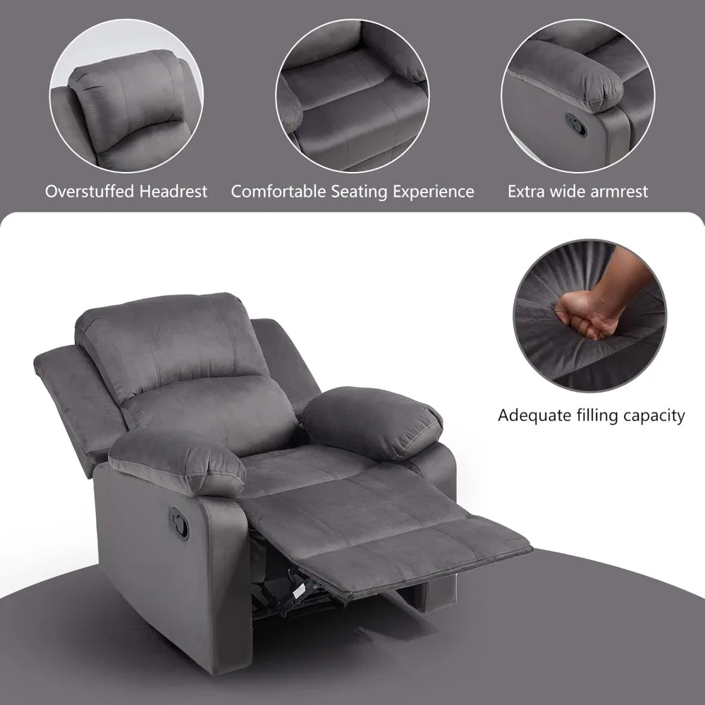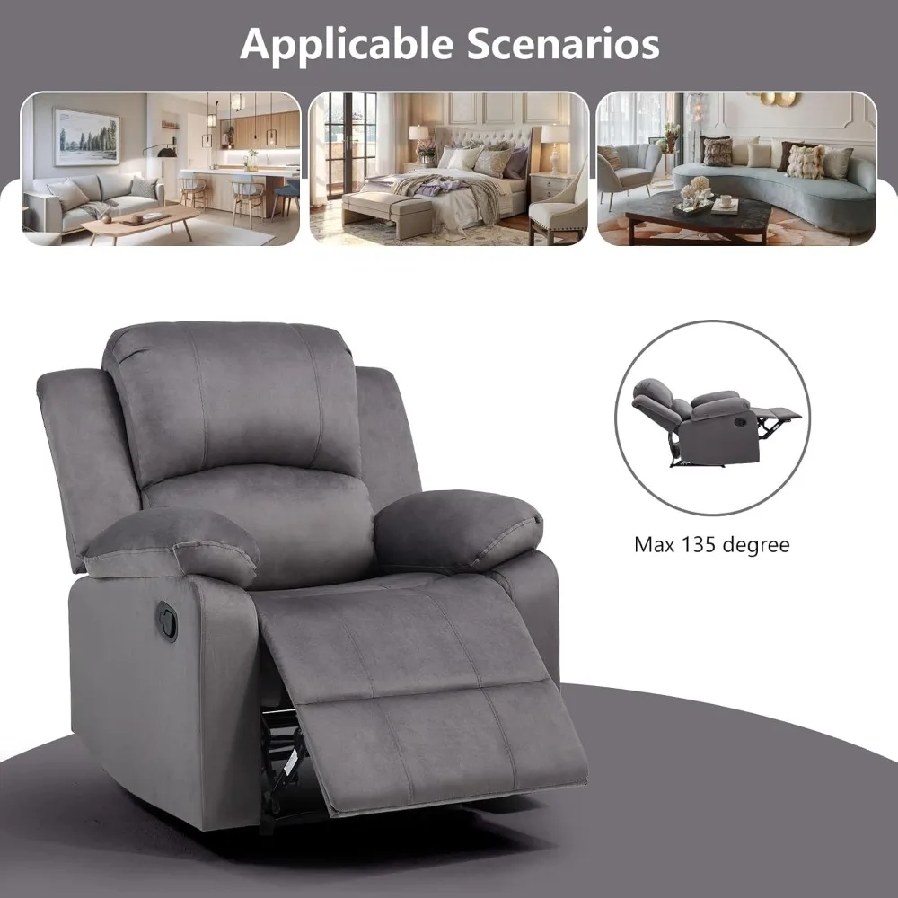 Manual Recliner Chair, Soft Fabric Overstuffed Recliner Single Sofa Chair for Living Room Bedroom, Heavy Duty and Safety