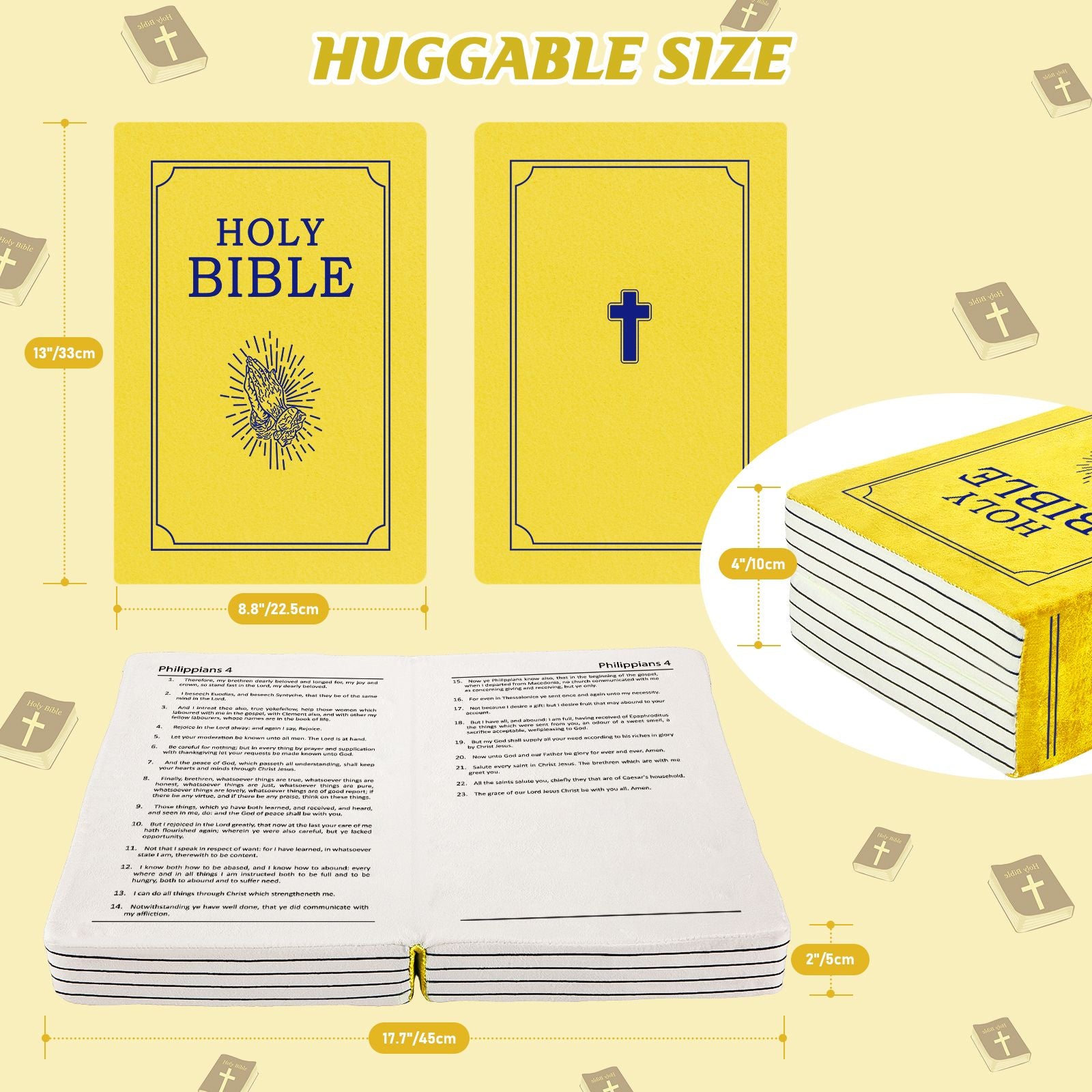• FAITHFUL BIBLE COMPANION– Our Holy Bible Pillow Book Plush that opens is a soft, cuddly representation of the Holy Bible. It is perfect for kids to engage with their faith joyfully.